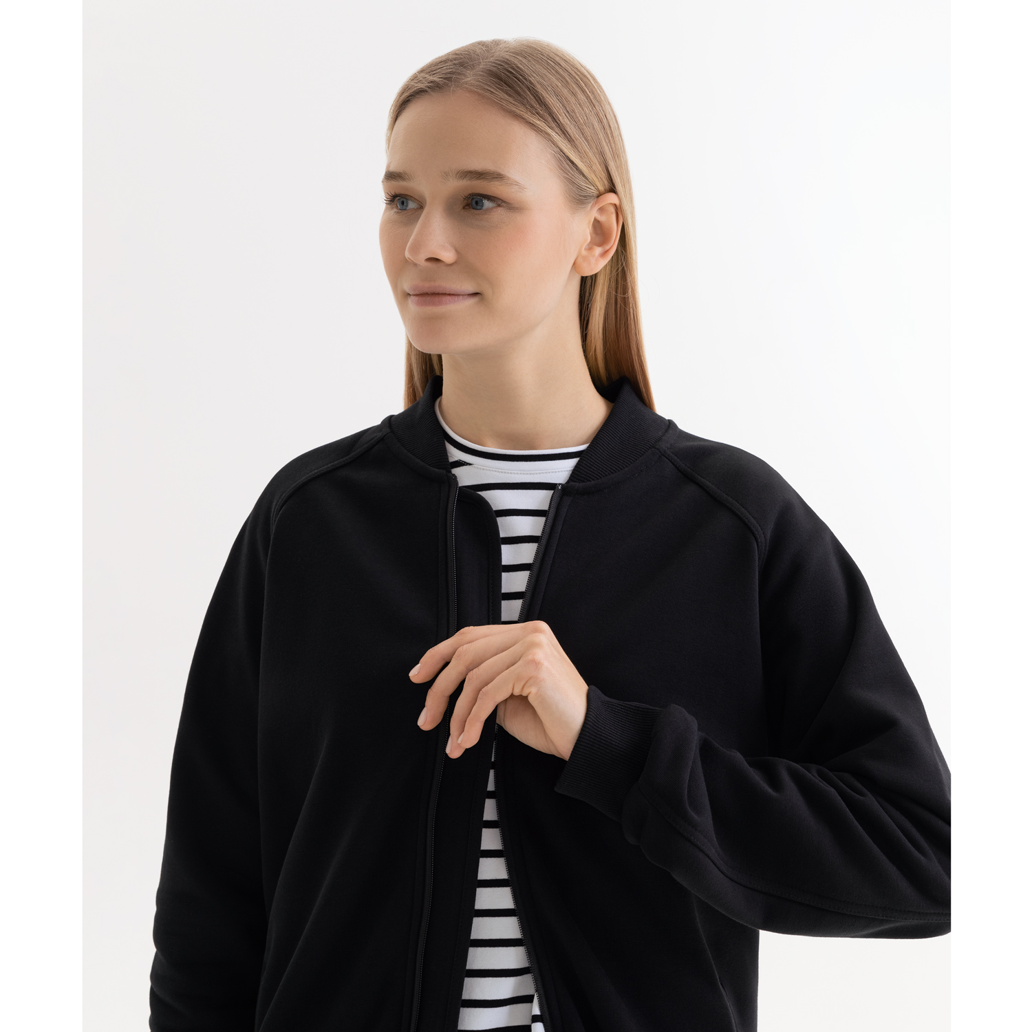 Рукав реглан даёт свободу в плечах, а воротник стойка выглядит естественно и аккуратно. Боковые карманы, манжеты и нижняя резинка делают модель удобной в движении и практичной в повседневной носке.