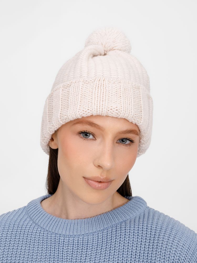 Однослойная шапка Frissonelle из полушерстяной пряжи рельефной вязки сохраняет тепло без излишней тяжести. Эластичный отворот мягко фиксирует шапку, не сдавливая голову, а пышный помпон добавляет лаконичный акцент, завершая образ. Эта модель станет верным спутником для городских прогулок в любую погоду.