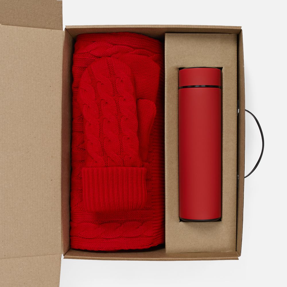 шарф, варежки - акрил 100%; термос - нержавеющая сталь, 304; покрытие софт-тач; коробка - микрогофрокартон