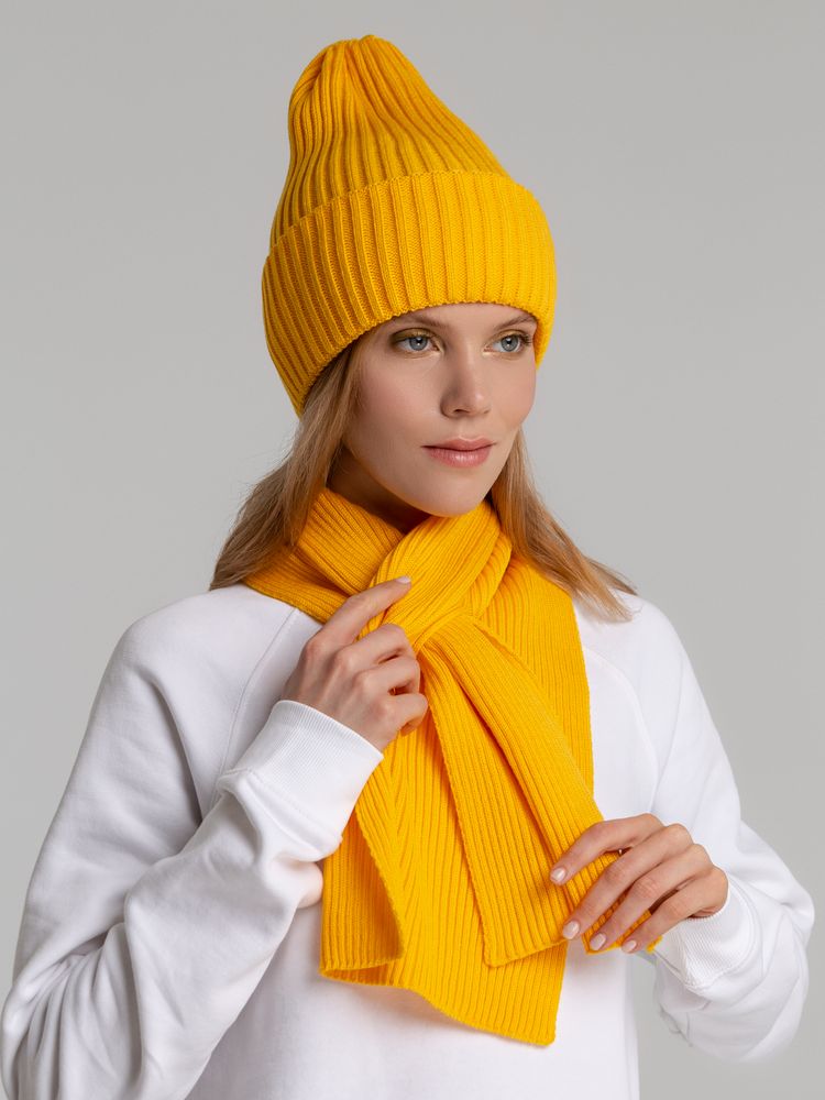 В набор входит удобный шарф с технологичным отверстием для быстрого завязывания, шапка с двойным отворотом и теплые двухслойные варежки с широкой манжетой. Все изделия связаны из акриловой пряжи, отличаются практичностью и элегантной простотой.