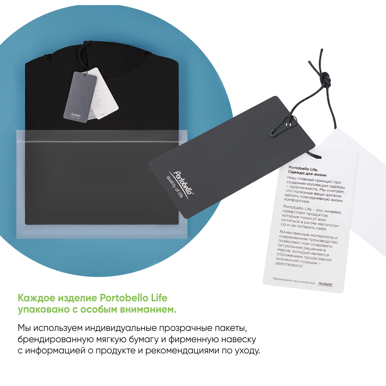 Модель выполнена из хлопкового футера плотностью 420 г/м (без начёса). Плотная, но мягкая ткань хорошо держит форму и при этом приятна к телу. Использована пряжа compact penye — прочная, тактильно деликатная, высокого качества.