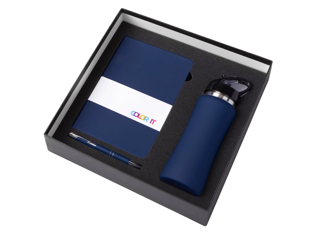 Color It — линейка, в которую входят хиты мерча в десяти самых популярных цветах. Еще никогда собрать сет под свой брендбук не было так просто. Широкая цветовая палитра серии позволяет создать идеальный набор в едином оттенке Pantone. Все товары имеют тактильно приятное покрытие софт-тач. Сет поставляется в коробке: мы продумали все, включая подарочную упаковку, за вас — осталось нанести лого! Спортивная бутылка для воды сделана из нержавеющей стали, а в пластиковой крышке предусмотрено специальное отверстие для питья, которое позволяет пить в движении. Бизнес-блокнот в гибкой обложке имеет ляссе в тон обложки и среза. Бумажный блок разлинован в линейку и выполнен из бумаги, полученной из древесины из специальных восполняемых лесных ресурсов, имеет сертификат FSC. Шариковая ручка имеет сменный стержень, поэтому такой мерч прослужит дольше обычной одноразовой ручки, долго напоминая о вас клиентам. - софт-тач покрытие на всех предметах набора; - объём бутылки: 600 мл; - блокнот А5 128 листов; - ручка с необычным слайдером; - подарочная упаковка из картона, оклеенного дизайнерской бумагой уже включена в набор.