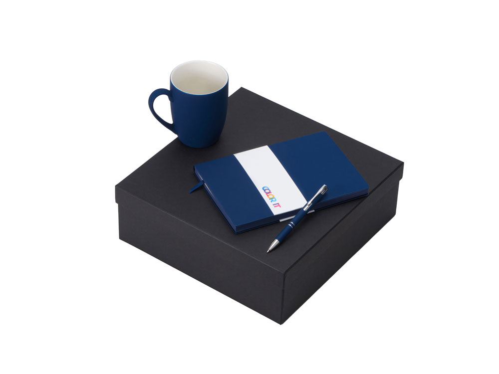 блокнот - искусственная кожа с покрытием софт-тач, ручка - алюминий с покрытием софт-тач, кружка - фарфор с покрытием софт-тач, коробка - картон 70 г/м2