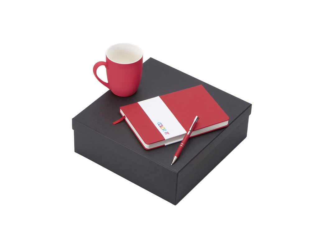 Color It — линейка, в которую входят хиты мерча в десяти самых популярных цветах. Еще никогда собрать сет под свой брендбук не было так просто. Широкая цветовая палитра серии позволяет создать идеальный набор в едином оттенке Pantone. Все товары имеют тактильно приятное покрытие софт-тач. Сет поставляется в коробке: мы продумали все, включая подарочную упаковку, за вас — осталось нанести лого! Фарфоровая кружка с удобной ручкой брендируется методом гравировки, поэтому нанесение будет долговечным и не сотрётся при мытье кружки. Бизнес-блокнот в твёрдой обложке имеет ляссе в тон обложки и среза. Бумажный блок разлинован в линейку и выполнен из бумаги, полученной из древесины из специальных восполняемых лесных ресурсов, имеет сертификат FSC. Шариковая ручка имеет сменный стержень, поэтому такой мерч прослужит дольше обычной одноразовой ручки, долго напоминая о вас клиентам. - объём кружки: 300 мл; - блокнот А5 128 листов; - ручка с необычным слайдером; - подарочная упаковка из картона, оклеенного дизайнерской бумагой уже включена в набор
