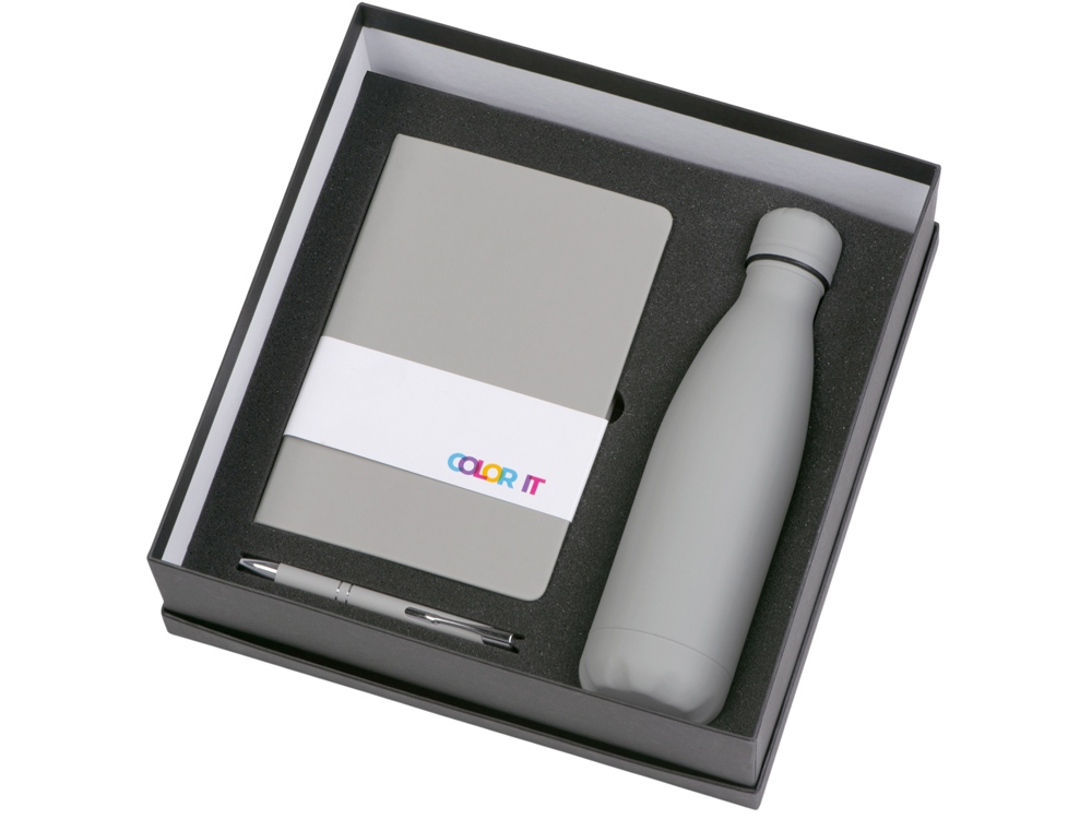 Color It — линейка, в которую входят хиты мерча в десяти самых популярных цветах. Еще никогда собрать сет под свой брендбук не было так просто. Широкая цветовая палитра серии позволяет создать идеальный набор в едином оттенке Pantone. Все товары имеют тактильно приятное покрытие софт-тач. Сет поставляется в коробке: мы продумали все, включая подарочную упаковку, за вас — осталось нанести лого! Классическая форма термобутылки сочетается с продуманной и технологичной конструкцией: вакуумная теплоизоляция и двойные стенки бутылки обеспечивают качественное сохранение температуры напитка до 24-х часов! Бизнес-блокнот в гибкой обложке имеет ляссе в тон обложки и среза. Бумажный блок разлинован в линейку и выполнен из бумаги, полученной из древесины из специальных восполняемых лесных ресурсов, имеет сертификат FSC. Шариковая ручка имеет сменный стержень, поэтому такой мерч прослужит дольше обычной одноразовой ручки, долго напоминая о вас клиентам. - софт-тач покрытие на всех предметах набора; - объём бутылки: 500 мл; - блокнот А5 128 листов; - ручка с необычным слайдером; - подарочная упаковка из картона, оклеенного дизайнерской бумагой уже включена в набор. График теплопотерь при температуре окружающей среды ≈ 25° 1ч. 2ч. 3ч. 4ч. 5ч. 6ч. 7ч. 8ч. 24ч. 50° 60° 70° 80° 90° 100°