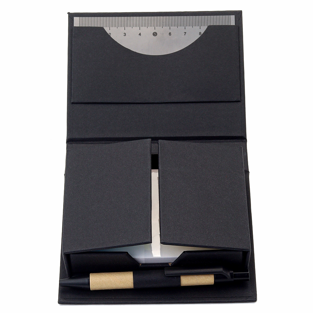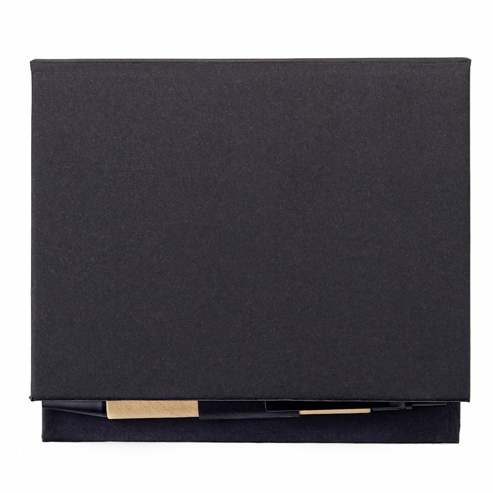 Набор для записей со стикерами Notora — стильный и экологичный комплект для продуктивной работы и учебы. В компактном футляре из переработанного черного картона вы найдете разноцветные стикеры, бумагу для заметок, линейку и ручку — всё необходимое для удобного планирования и творчества в одном наборе. 11,5*10,2*2,9 - размер в сложенном виде, 25,5*22 см - размер в разложенном виде. Состав набора: - линейка: 10 см, - ручка, - бумажный блок для записей: 100 листов, - малые стикеры с клеевым краем пяти цветов: 5х10 листов, - бумажный мини-блок для записей с клеевым краем: 15 листов.