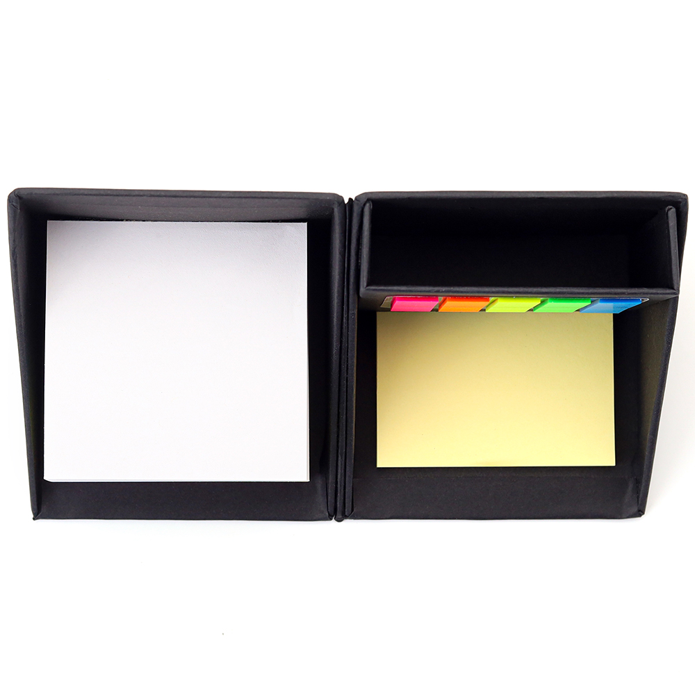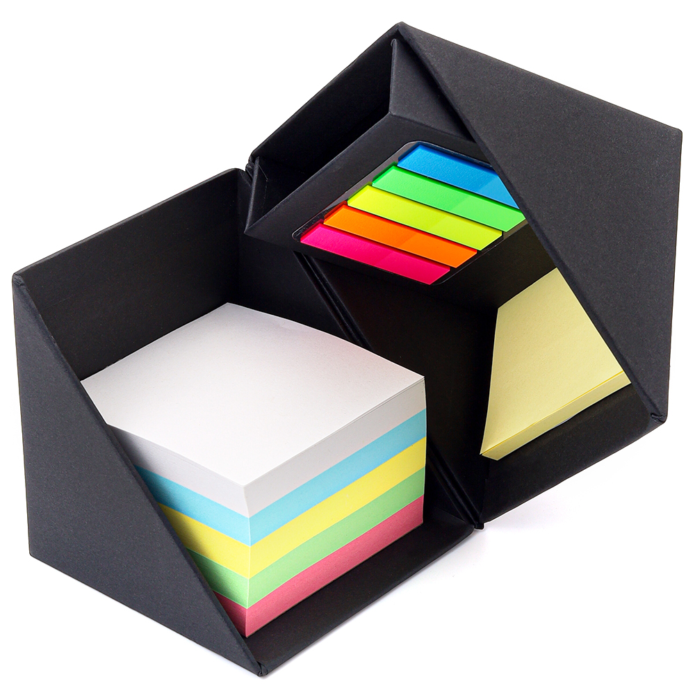 Настольный органайзер Nivora с бумажными стикерами — компактное и стильное решение для хранения канцелярии и быстрых заметок. Помогает держать рабочее место в порядке и вдохновляет на продуктивность. 9,3*9,3 см - размер в сложенном виде, 19,3*9,3*9,3 см - размер в разложенном виде; В состав органайзера входят: - подставка картонная для канцелярии черного цвета, - бумажный блок для записей: 5х100 листов, - бумажный блок для записей с клеевым краем: 50 листов, - малые стикеры с клеевым краем пяти цветов: 5х20 листов.