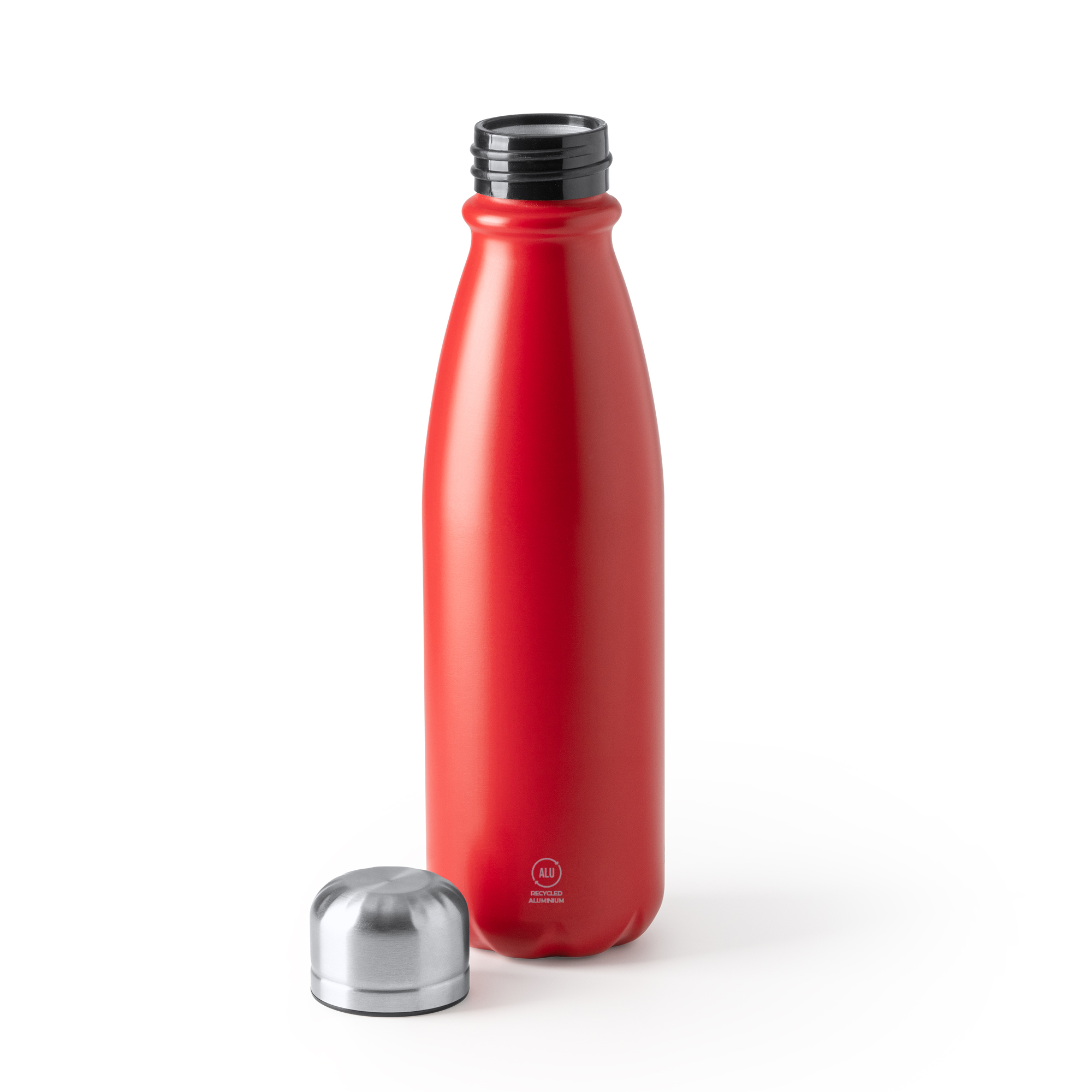 Бутылка из переработанного алюминия с простыми стенками идеально подходит для ежедневного использования. Емкость 550 мл.