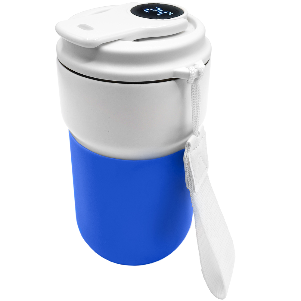 НОВИНКА - термокружка CLIVE TO GO!! В набор входит уже хорошо знакомая термокружка Clive с дисплеем (420 мл) и цветная силиконовая манжета. Термокружка выполнена из пищевой нержавеющей стали. Имеет двойные стенки с вакуумной изоляцией, крышка изготовлена из пищевого безопасного для человека пластика. Термокружка Clive не только сохраняет ваши напитки горячими, но и показывает температуру напитка! Уникальная особенность данной термокружки – наличие сенсорного индикатора температуры, расположенного в крышке. Чтобы узнать температуру напитка внутри кружки, достаточно прикоснуться к поверхности крышки. Работает от 1 батарейки типа CR2032 (в комплекте). Надежная крышка - качественные и безопасные материалы - двойные стенки из нержавеющей стали - сенсорный ЖК-дисплей - информация о температуре жидкости -отличные теплоизоляционные свойства - эргономичный дизайн - удобная форма! Термокружка подходит для большинства автомобильных подстаканников. Манжета препятствует скольжению на поверхности, придаёт устойчивости, а также позволяет создать свой неповторимый дизайн для вашей термокружки! Цвет манжеты - синий, максимально приближен к Pantone 287С. Насладись своим кофе в компании термокружки Clive TO GO! Сделай свою кружку особенной!