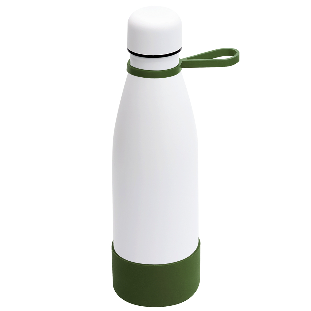 Наша термобутылка из нержавеющей стали с двойными стенками идеально подходит для горячих или холодных напитков и впечатляет своим модным и функциональным дизайном. Конструкция с двойными стенками и вакуумом гарантирует, что напитки дольше останутся горячими или холодными. Бутылку для питья можно заказать в элегантном черном или белом матовом порошковом исполнении. Доступна объёмом 480 мл. Стильно разместите свой логотип на этой модной бутылке для напитков премиум-качества. Двойная стенка с медно-вакуумной изоляцией Микропорошковое покрытие 100% герметичность Цвет по PANTONE® кольца-держателя и манжеты (максимально приближен): Khaki 7498С