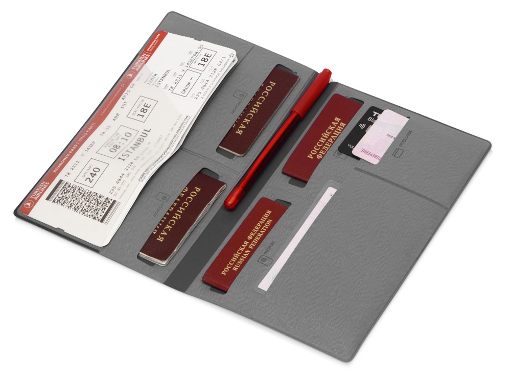 Вместительный и стильный органайзер для документов незаменим в путешествии. Выполнен из качественного материала. Экокожа приятна на ощупь и имеет различные расцветки. Внутри имеется восемь карманов, которые позволяют вместить документы для семьи из четырех человек. Документы аккуратно разложены и не утратят свою форму. Благодаря своим преимуществам органайзер для путешествий становится не только отменным подарком, но и эффективным рекламным средством.