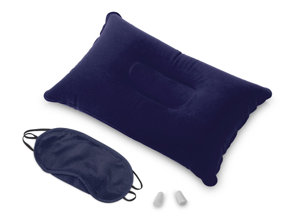Путешествуйте с комфортом вместе с дорожным набором "Cloud", который включает в себя подушку из ПВХ прямоугольной формы, повязку на глаза и полиуретановые беруши. Также в комплекте есть чехол на завязках для хранения и удобной транспортировки.