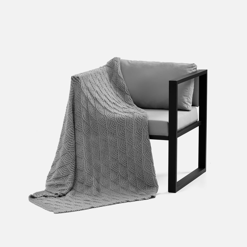 Продуманный дизайн пледа Fermata сочетает в себе классику и современные тенденции. Плавные линии узора гармонично переплетаются, создавая объемный эффект и придавая изделию особую текстуру.