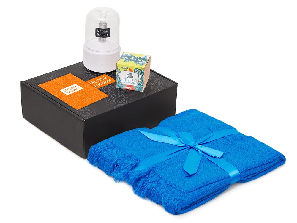 плед - 100% акрил, увлажнитель-аромадиффузор - АБС палстик, поликарбонат, набор для выращивания - дерево, мешок - нетканый материал (спанбонд), коробка - картон