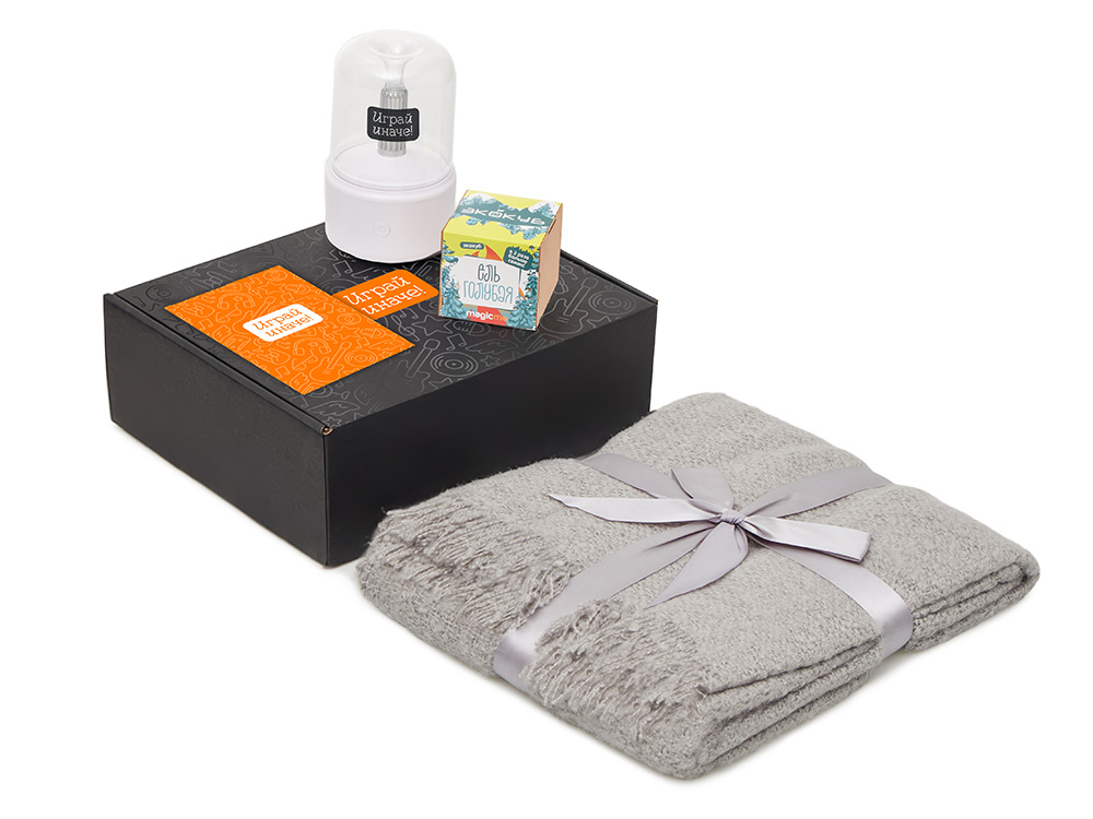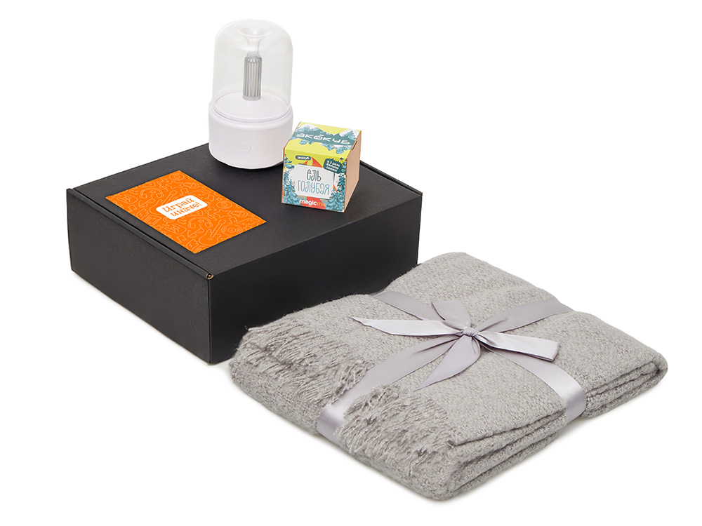 плед - 100% акрил, увлажнитель-аромадиффузор - АБС палстик, поликарбонат, набор для выращивания - дерево, мешок - нетканый материал (спанбонд), коробка - картон