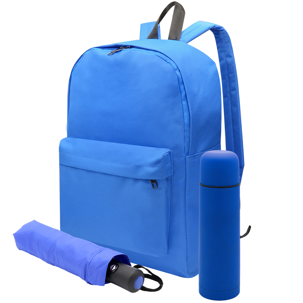 Набор CAPYBARA создан для ценителей уютного стиля, практичности и милоты. Он подарит позитивные эмоции и сделает немного ярче даже самый хмурый. Капибара — не просто животное, это состояние души. Символ спокойствия, принятия и умения наслаждаться текущим моментом. Мы создали этот набор, чтобы вы могли принести кусочек этой безмятежности в свою жизнь или сделать уникальный подарок близкому человеку. Состав набора: 1. Рюкзак BEAVIS синий (артикул 4045.03) - 1 шт. 2. Автоматический противоштормовой зонт Vortex синий (артикул 8004.03) - 1 шт. 3. Накладка силиконовая для зонта Vortex синяя (артикул 8004D.03) - 1 шт. 4. Термос Picnic Soft синий (артикул 5006.03 - 1 шт.) 5. Пакет из бумаги Arrange бежевый (артикул RUS7500.19) - 1 шт.