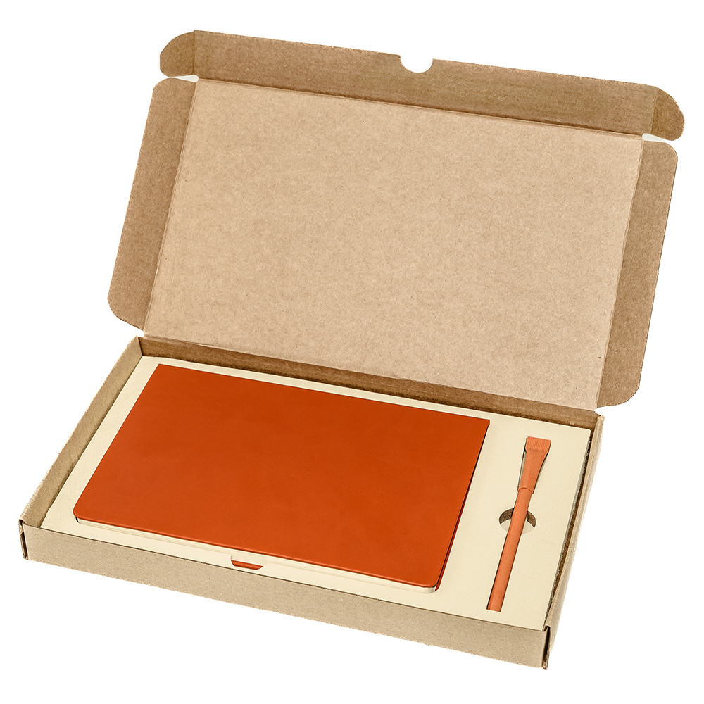 Подарочный набор в стильной картонной коробке бежевого цвета. Внутри на аккуратном ложементе располагаются ежедневник недатированный в твердом переплете и картонная ручка с колпачком. Состав набора: Ежедневник A5 недатированный Dear в твёрдом переплёте, оранжевый (арт. 51021.07) - 1 шт. Ручка картонная Greta с колпачком, оранжевый (арт. 1041.07) - 1 шт. Самосборная коробка из бурого микрогофрокартона (арт. RUS5055.19) - 1 шт.