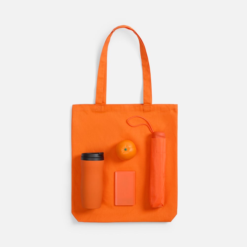 зонт - полиэстер 190T, ручка - пластик; покрытие софт-тач; каркас, спицы - металл; аккумулятор - пластик; крышка термостакана, внутренняя колба - пластик, корпус - нержавеющая сталь; покрытие софт-тач; сумка - хлопок 100%, плотность 210 г/м²; антистресс - вспененный полиуретан