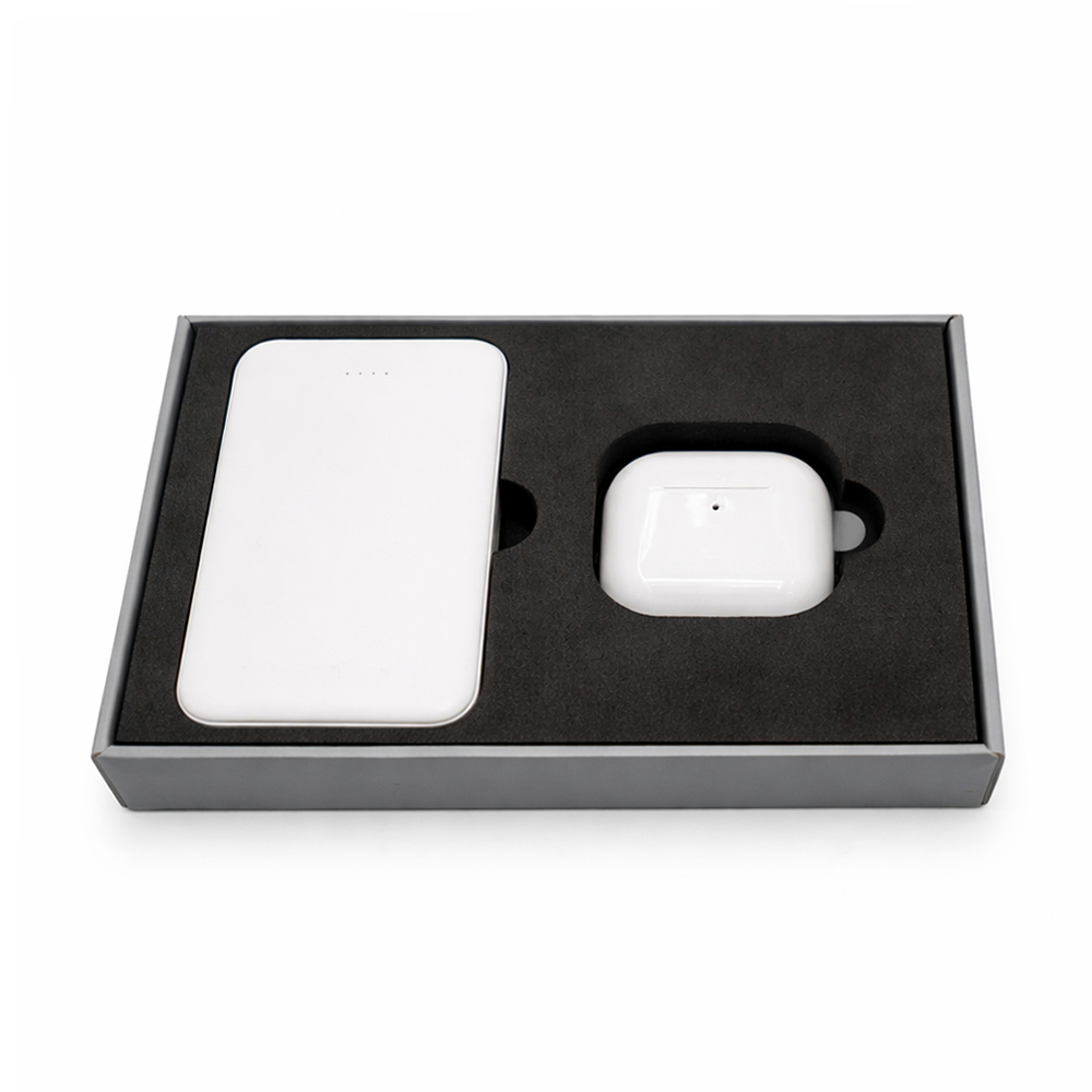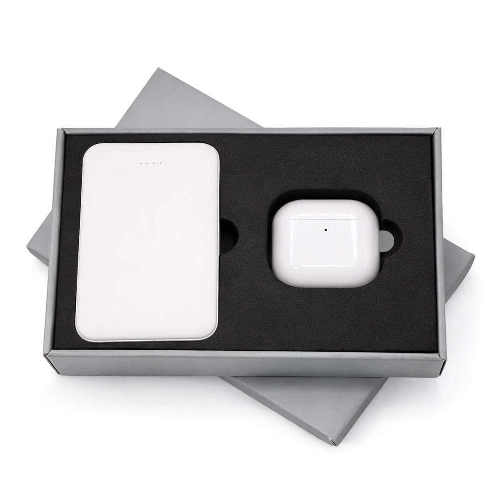 "Travel Pack" — Подарочный набор в элегантной цветной коробке серого цвета (RUS5051.19) с конструкцией крышка-дно. Внутри расположен ложемент, специально разработанный для надежного и аккуратного размещения всех элементов набора. В набор входят: Внешний аккумулятор Fluffy, 5000 Mah, белый (арт. 2041.01) Наушники беспроводные Bluetooth Neat, белый (арт.47007.01)