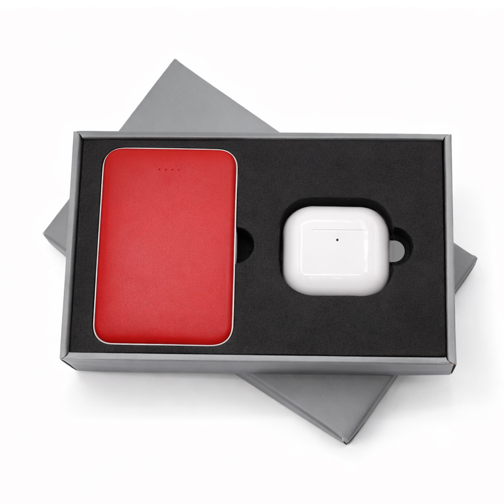 "Travel Pack" — Подарочный набор в элегантной цветной коробке серого цвета (RUS5051.19) с конструкцией крышка-дно. Внутри расположен ложемент, специально разработанный для надежного и аккуратного размещения всех элементов набора. В набор входят: Внешний аккумулятор Fluffy, 5000 Mah, красный (арт. 2041.05) Наушники беспроводные Bluetooth Neat, белый (арт.47007.01)