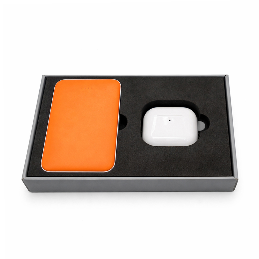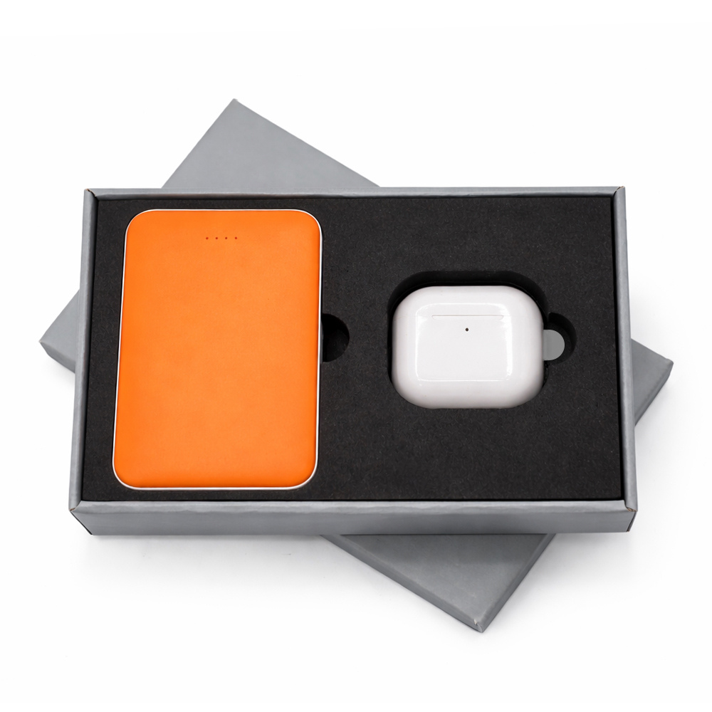 "Travel Pack" — Подарочный набор в элегантной цветной коробке серого цвета (RUS5051.19) с конструкцией крышка-дно. Внутри расположен ложемент, специально разработанный для надежного и аккуратного размещения всех элементов набора. В набор входят: Внешний аккумулятор Fluffy, 5000 Mah, оранжевый (арт. 2041.07) Наушники беспроводные Bluetooth Neat, белый (арт.47007.01)