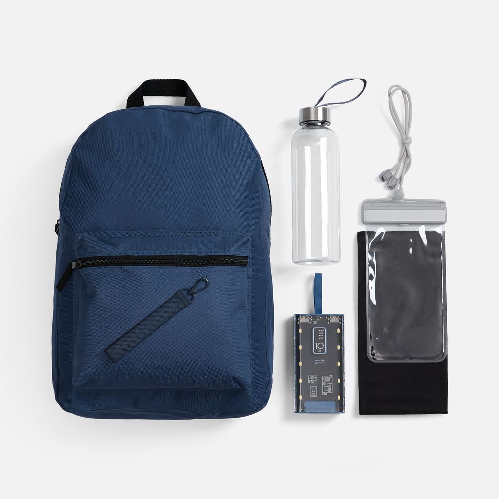 аккумулятор - пластик, акриловое стекло; рюкзак - полиэстер, 600D; водонепроницаемый чехол - АБС-пластик, ПВХ; бутылка - пластик, пищевой; крышка - металл, пластик; бандана - полиэстер 100%, плотность 140 г/м²; джерси; ремувка - металл, полиэстер 100%