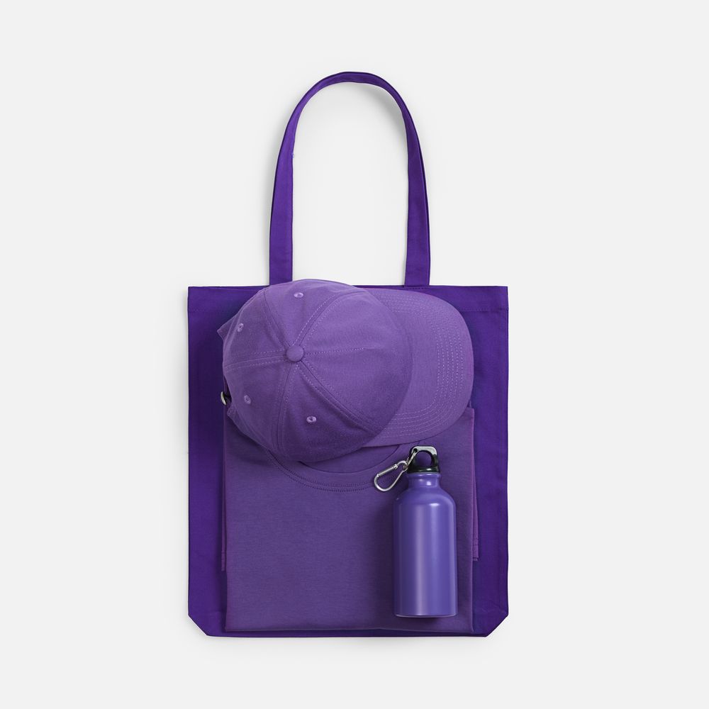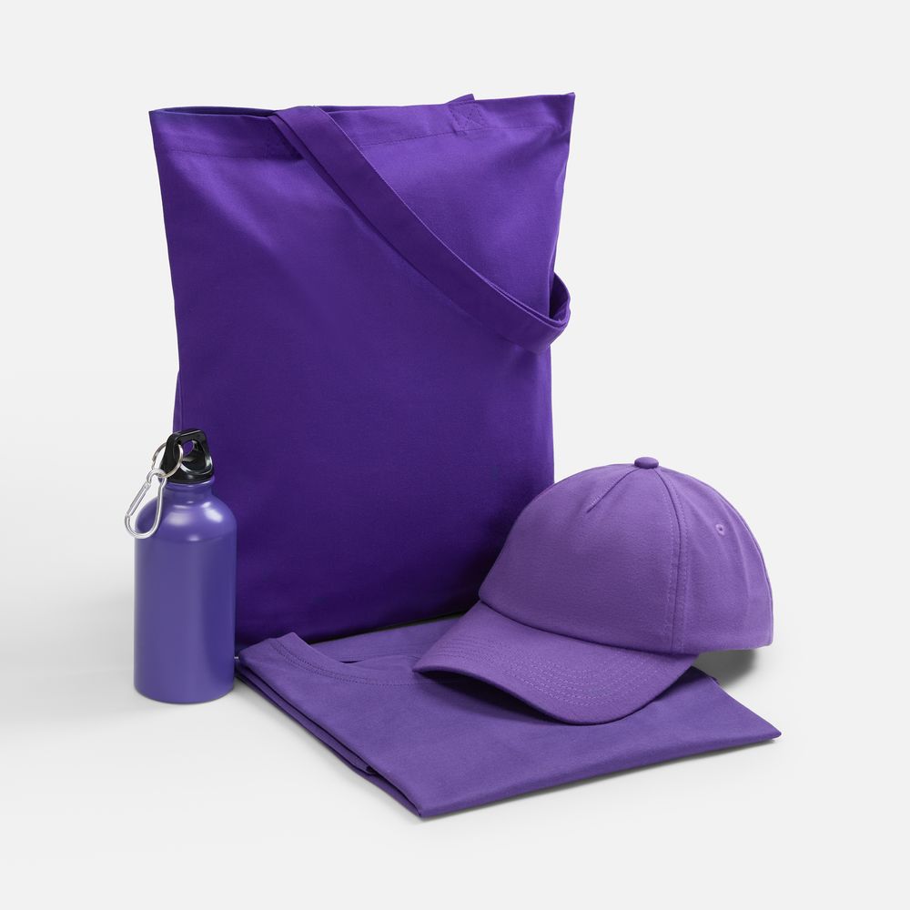 футболка - хлопок 100%, гребенная пряжа (пенье), плотность 160 г/м²; джерси; бейсболка - полиэстер, 75%; хлопок, 25%, плотность 170 г/м²; джерси; бутылка - алюминий; крышка - пластик; сумка - хлопок 100%, плотность 220 г/м²; саржа