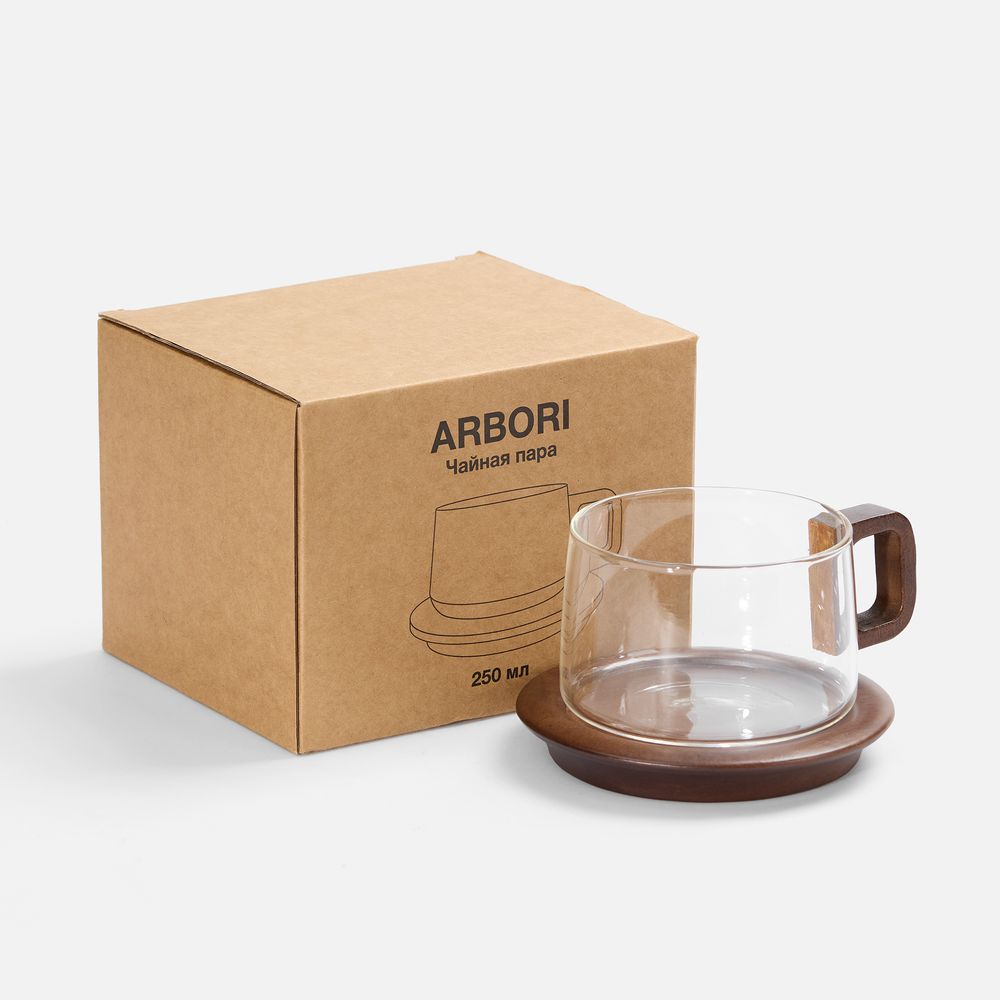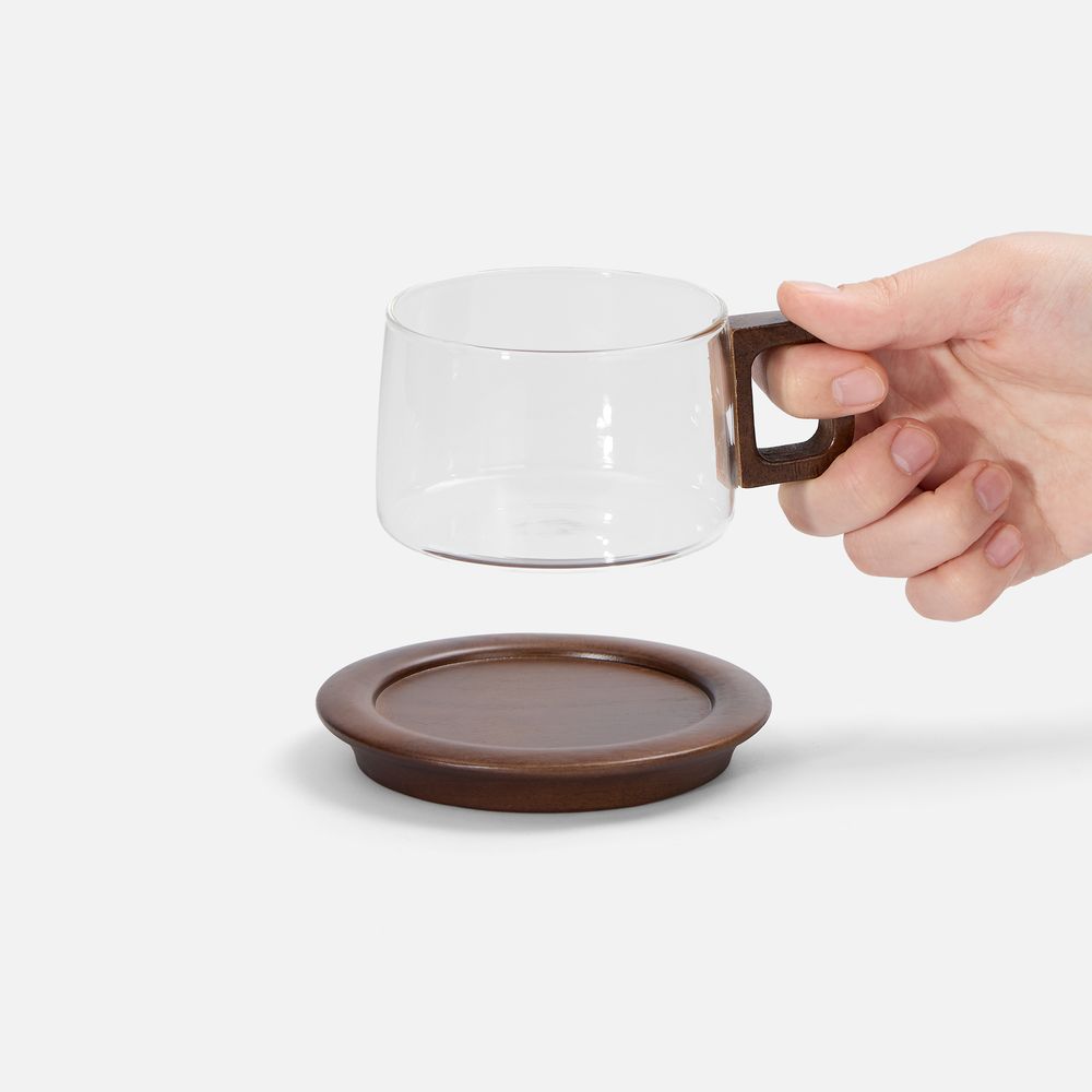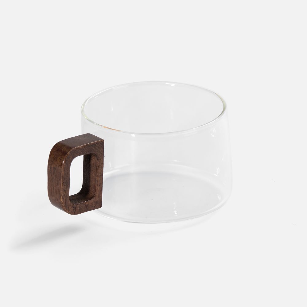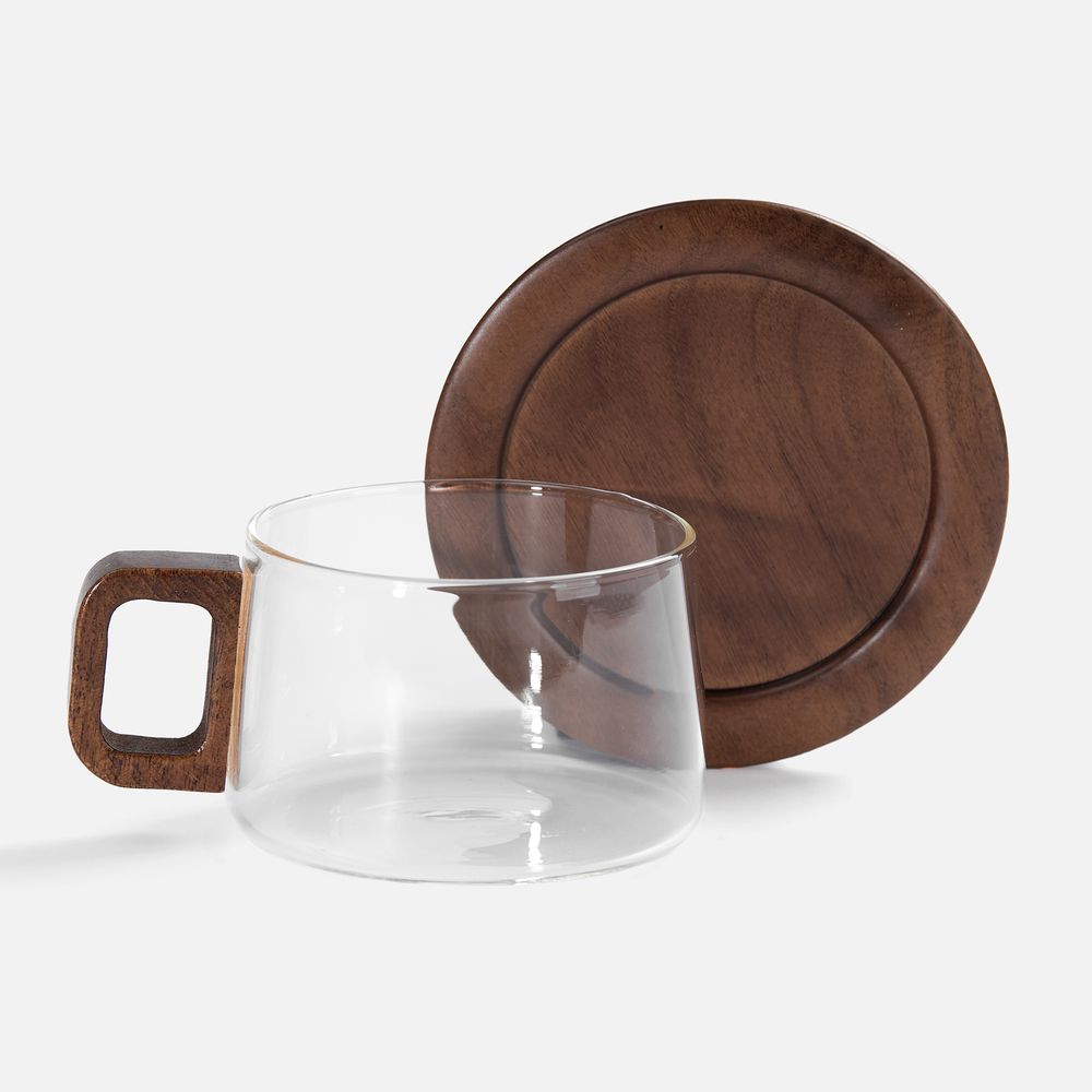 чашка - боросиликатное стекло; ручка, блюдце - орех