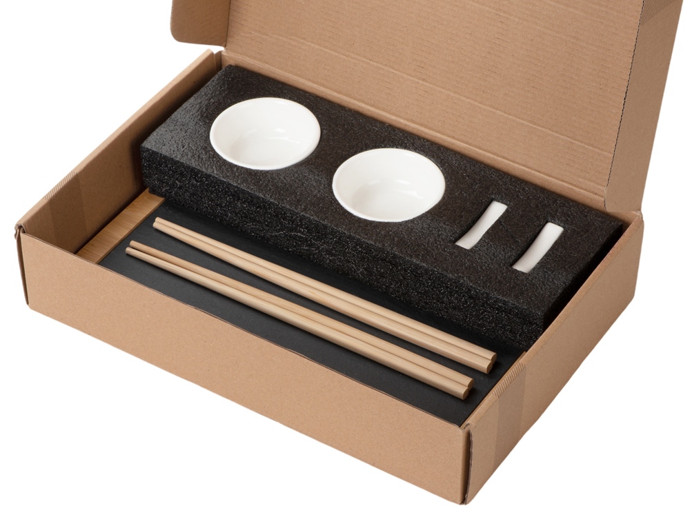 Набор для суши "Maki" – идеальный выбор для ценителей японской кухни, объединяющий стиль и практичность. Комплект включает всё необходимое для красивой и удобной сервировки суши и других азиатских блюд: - Две керамические пиалы для соусов или гарниров, идеально подходящие для подачи соевого соуса, васаби, имбиря и других приправ. - Две керамические подставки для палочек, которые обеспечивают удобство и чистоту, удерживая палочки на месте и защищая их от контакта с поверхностью стола. - Две пары деревянных палочек, которые комфортно держатся в руке и добавляют аутентичности процессу трапезы. - Бамбуковая доска-подставка добавляет натурального акцента и служит базой для подачи, позволяя разместить блюда на стильной основе. - Сланцевая доска из натурального камня придаёт элегантность сервировке и сохраняет прохладу подаваемых блюд, что особенно важно для суши и сашими. Каждый элемент упакован в защитную вставку-ложемент внутри коробки, обеспечивая безопасность при транспортировке и удобство хранения. Этот стильный и продуманный суши-набор идеально подойдёт для дома, подарка или для создания атмосферы настоящего японского ресторана прямо за вашим столом.