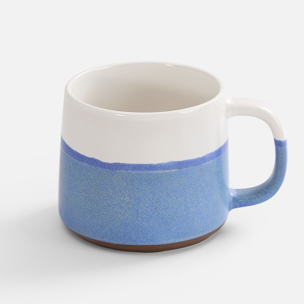 Нижняя половина кружки покрыта реактивной глазурью — особым видом керамического покрытия, компоненты которого вступают в химическую реакцию во время обжига при температуре 1200°C и выше. Из-за непредсказуемого взаимодействия компонентов создаются уникальные переливы, узоры и текстуры, поэтому в партии невозможно найти два абсолютно одинаковых изделия.диаметр 9,5 см, ширина с ручкой 13,3 см, высота 9 см