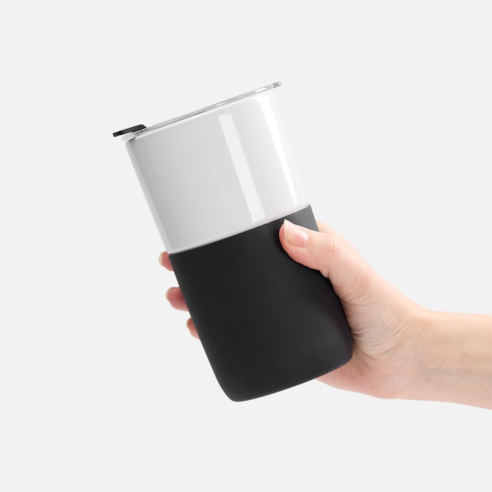 каменная керамика; рукав - силикон; крышка - пластик, полистирол