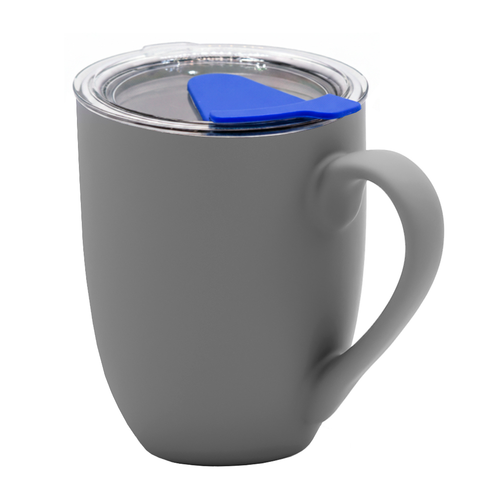 НОВИНКА - кружка Velvet Duo!! Уют в каждой детали. Керамическая кружка Velvet Duo дарит не только тепло любимого напитка, но и приятные тактильные ощущения благодаря нежному покрытию soft-touch с бархатистой поверхностью. А практичная крышка с аккуратным отверстием для питья на защёлке позаботится о том, чтобы ни капли не пролилось на клавиатуру или диван. Ваш идеальный спутник для неспешного утра, рабочего дня или отдыха на террасе. Набор состоит из: 1. Кружка керамическая Elegante софт-тач, тёмно-серая (артикул 6109.20) 2. Крышка Funny, синяя (артикул. 6141K.03) Цвет максимально приближен к Pantone 287 С Пейте с комфортом. В любой обстановке!