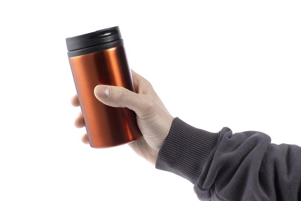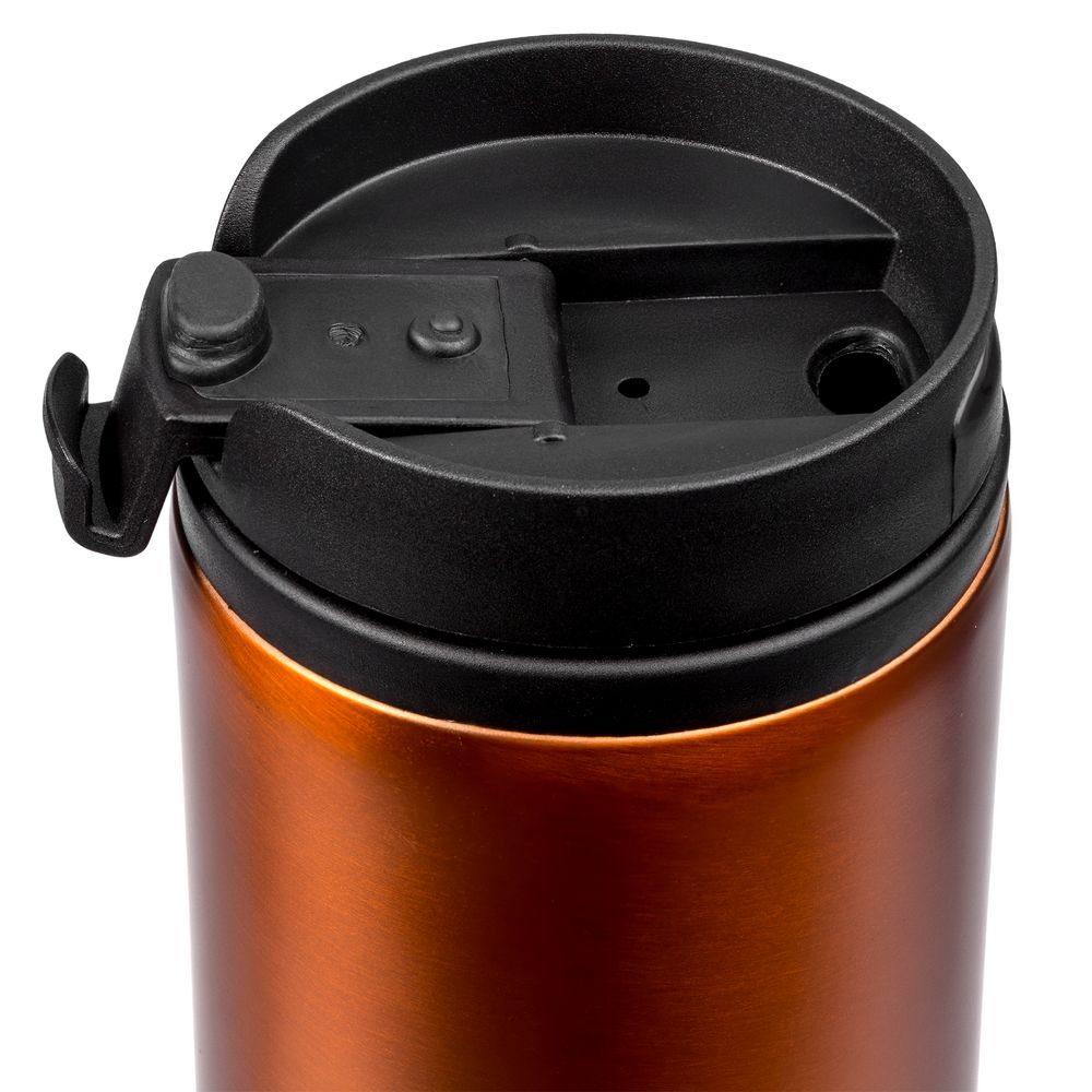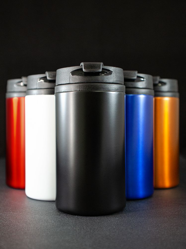 Двухслойная конструкция из пищевого пластика внутри и нержавеющей стали снаружи. Герметичная завинчивающаяся крышка с откидным клапаном для питья.