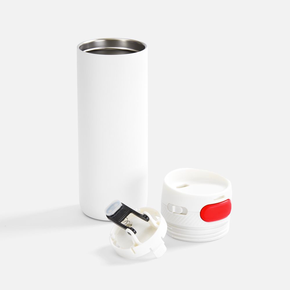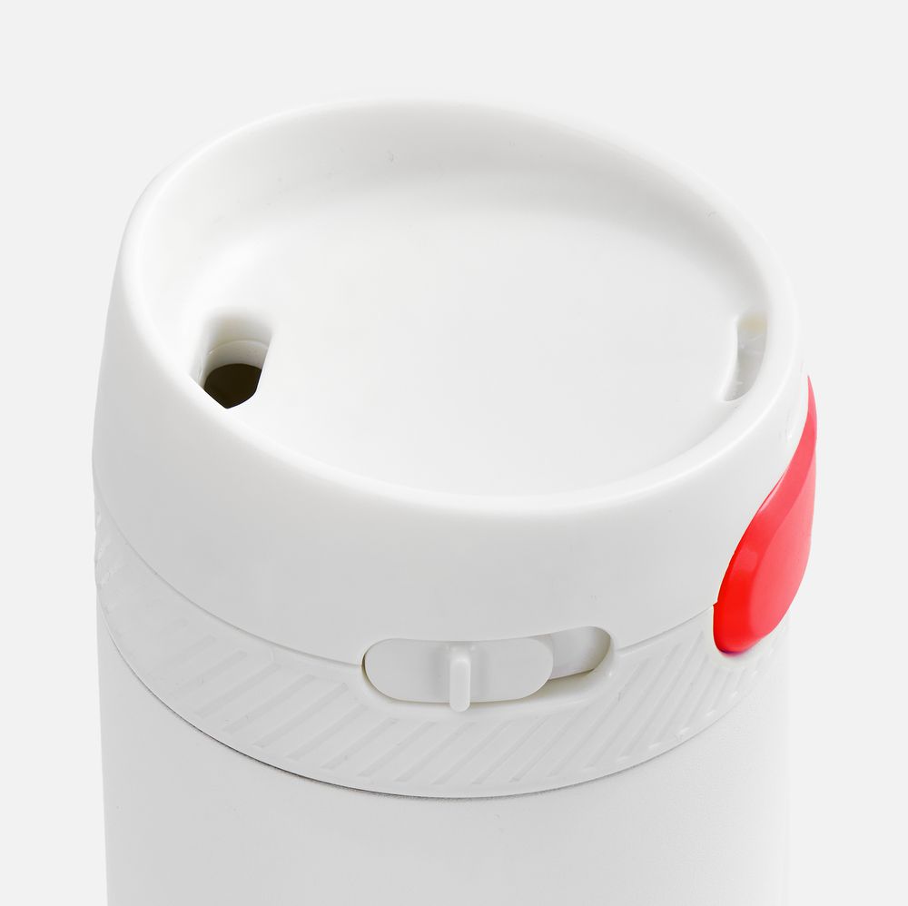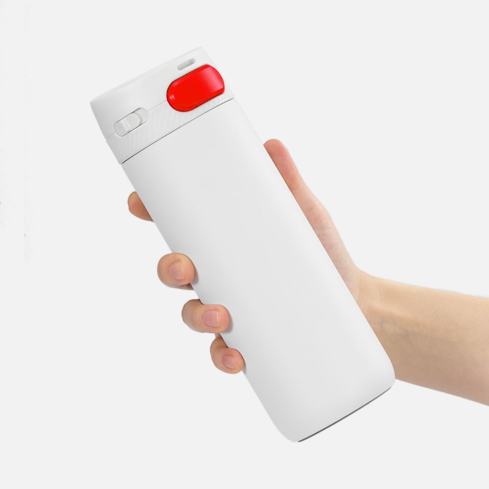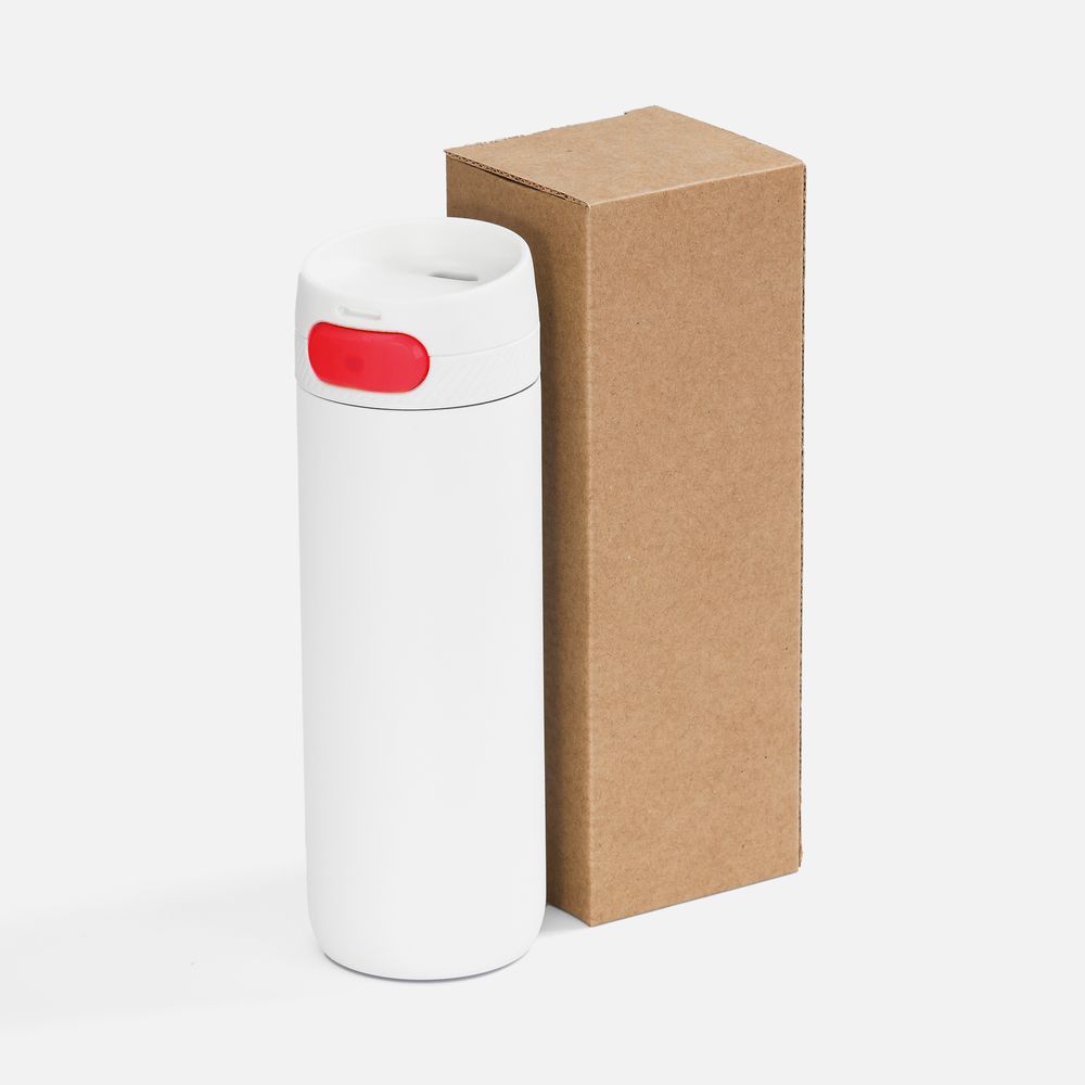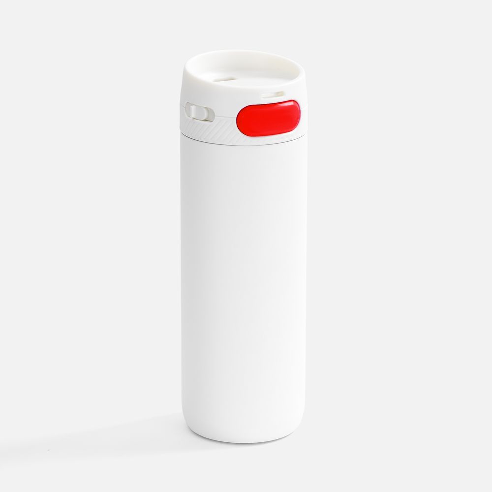 Термостакан X1 с цветной кнопкой, белый с красным диаметр дна 7 см, высота 22,5 см; упаковка: 23,7х8,2х8,2 см