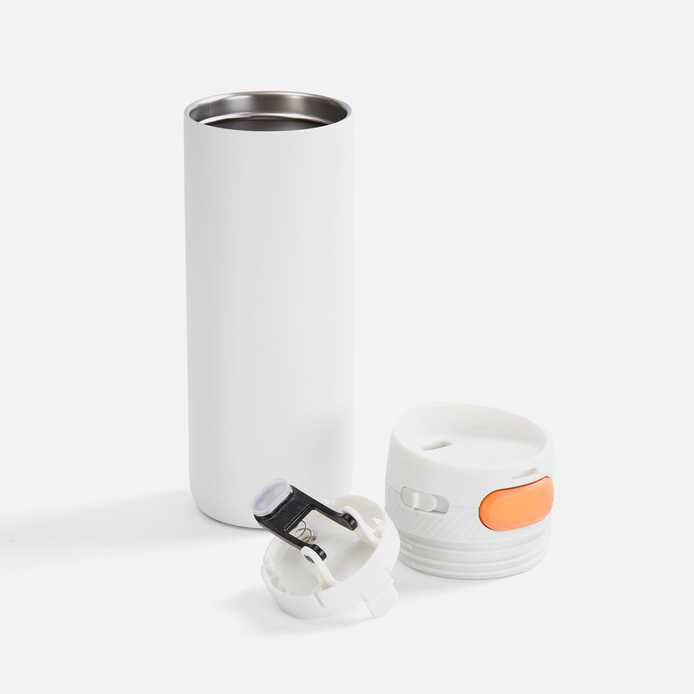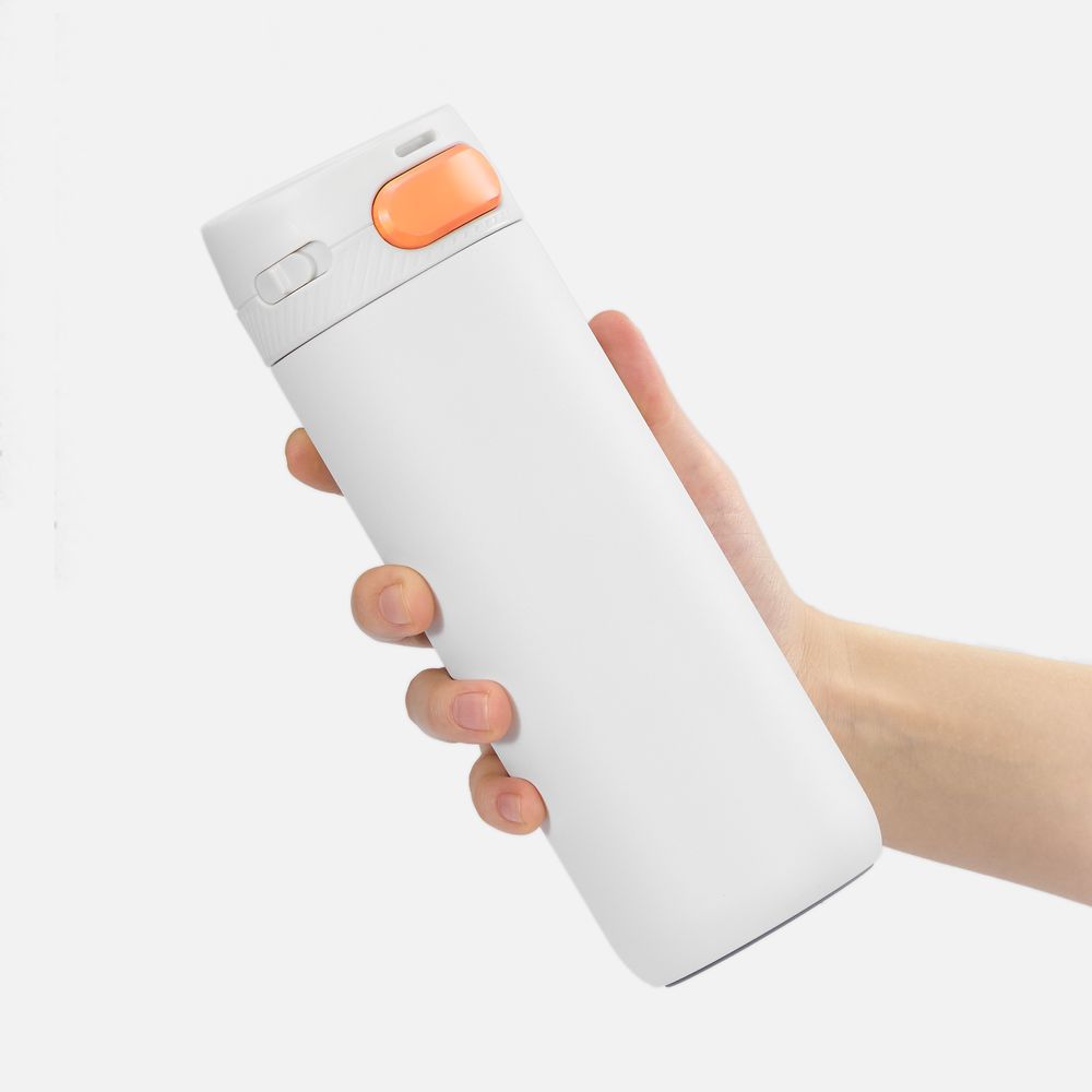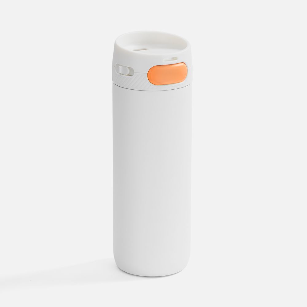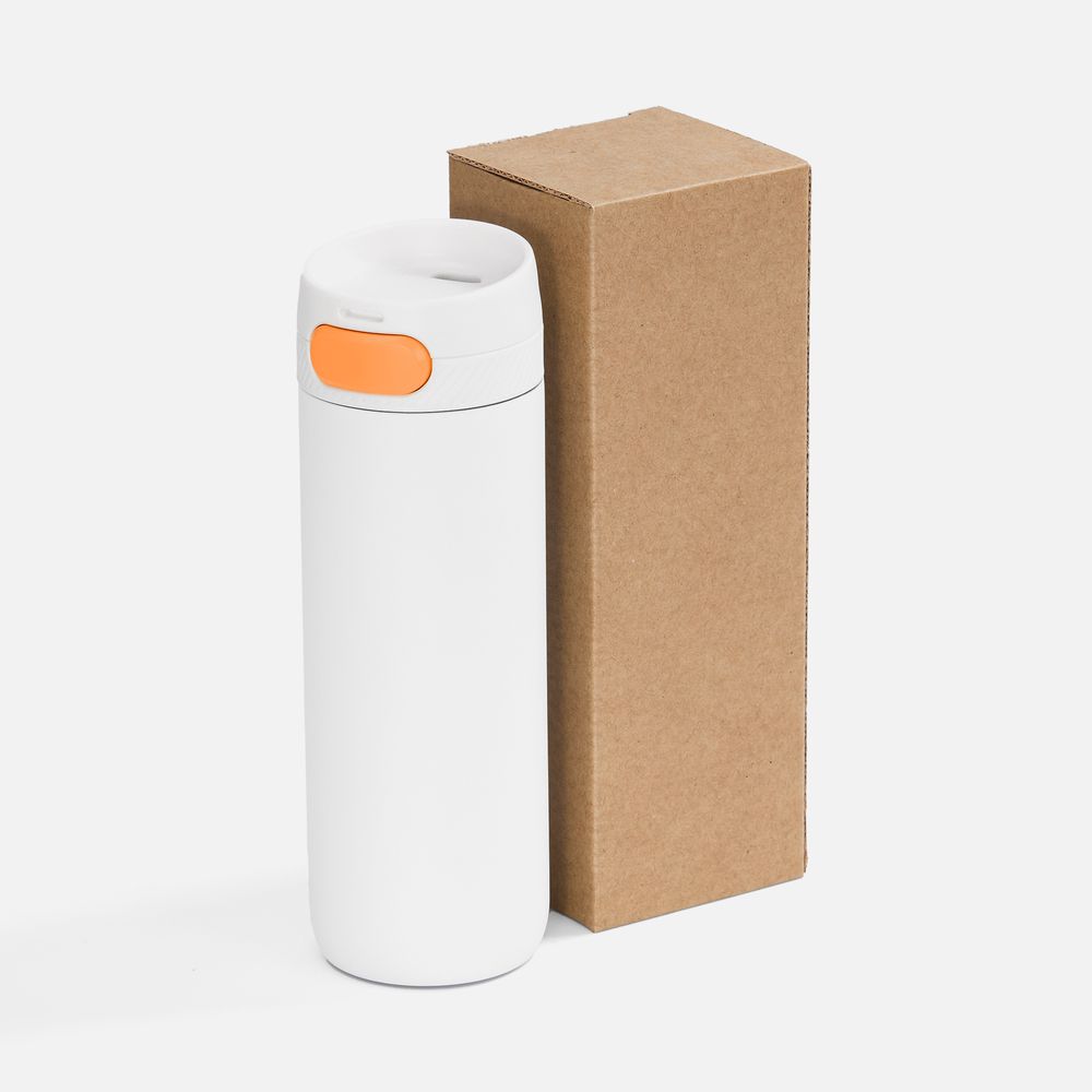 Термостакан X1 с цветной кнопкой, белый с оранжевым диаметр дна 7 см, высота 22,5 см; упаковка: 23,7х8,2х8,2 см