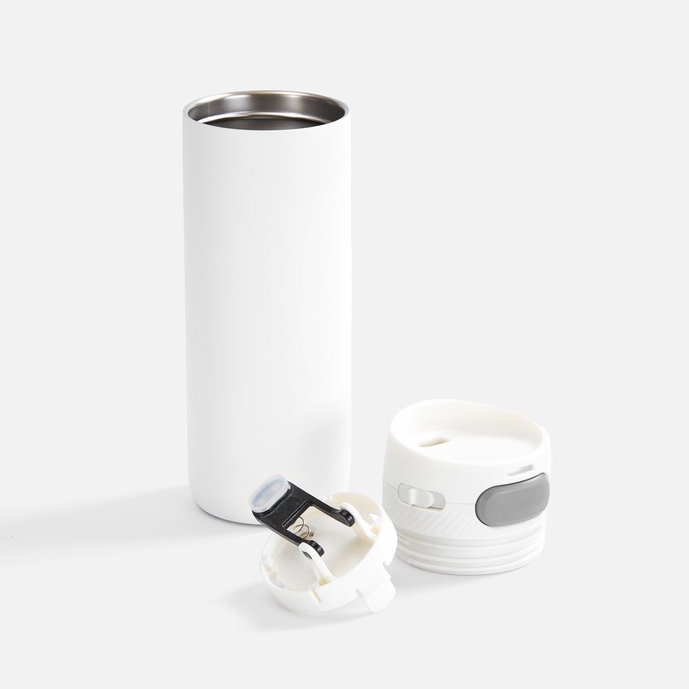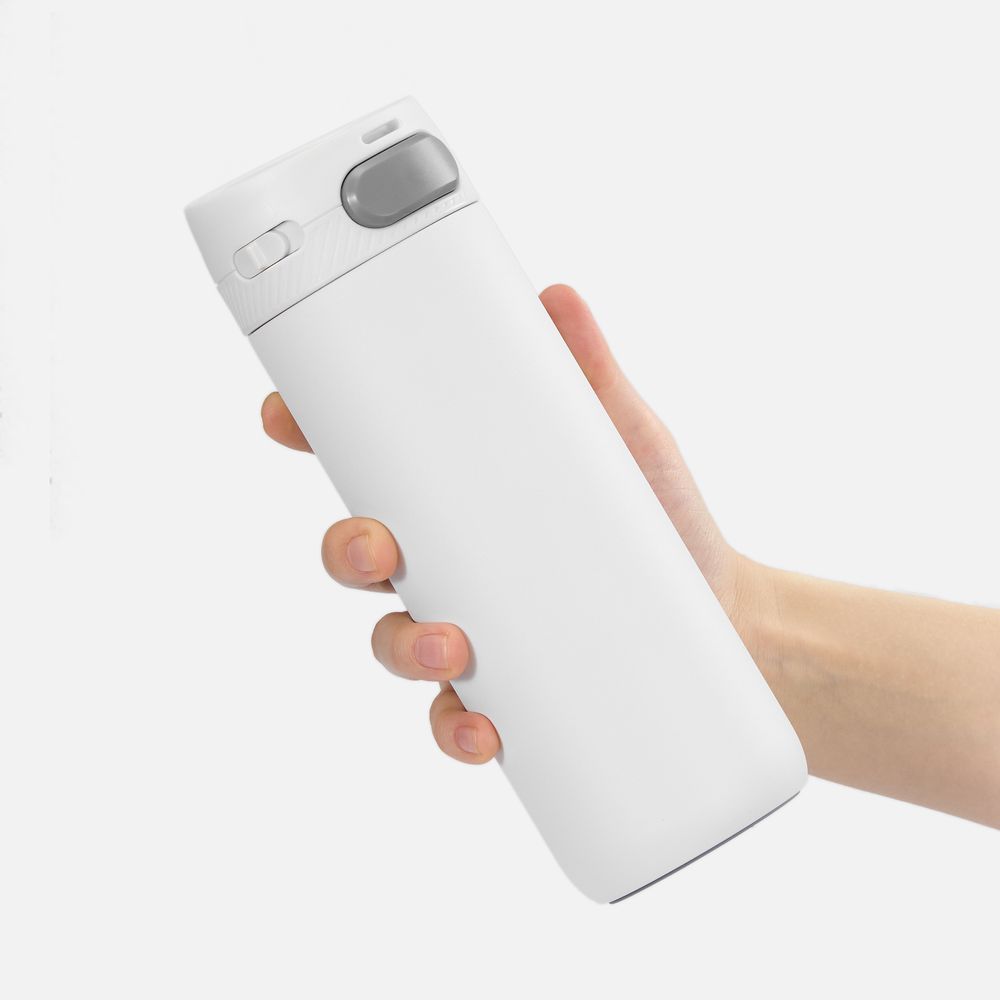 Термостакан X1 с цветной кнопкой, белый с серым диаметр дна 7 см, высота 22,5 см; упаковка: 23,7х8,2х8,2 см