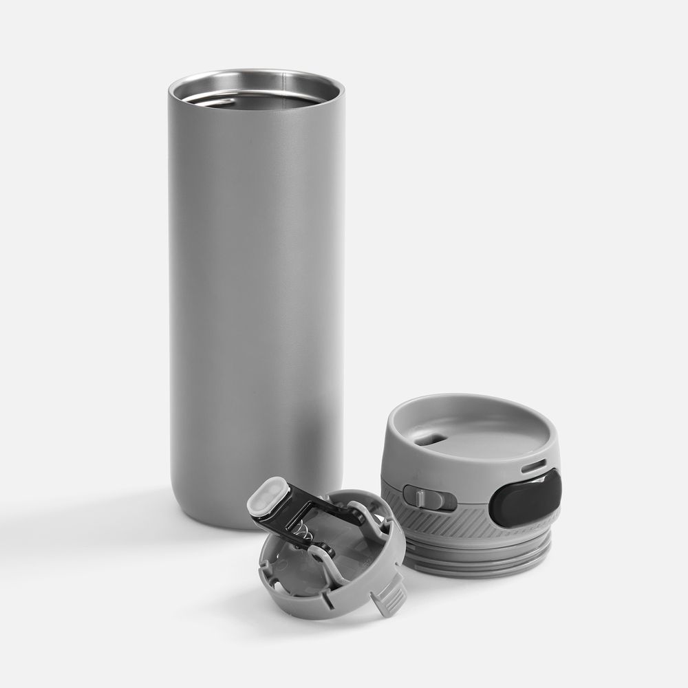 Термостакан X1 с цветной кнопкой, серый с черным диаметр дна 7 см, высота 22,5 см; упаковка: 23,7х8,2х8,2 см