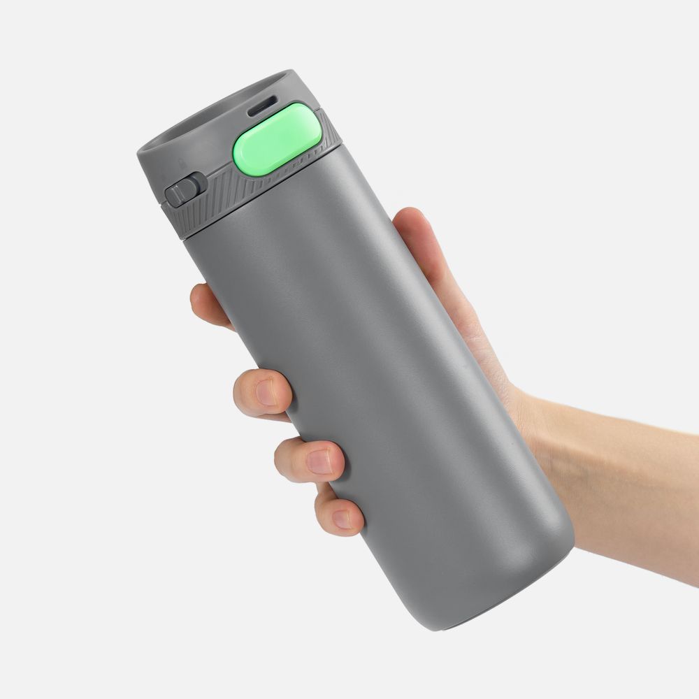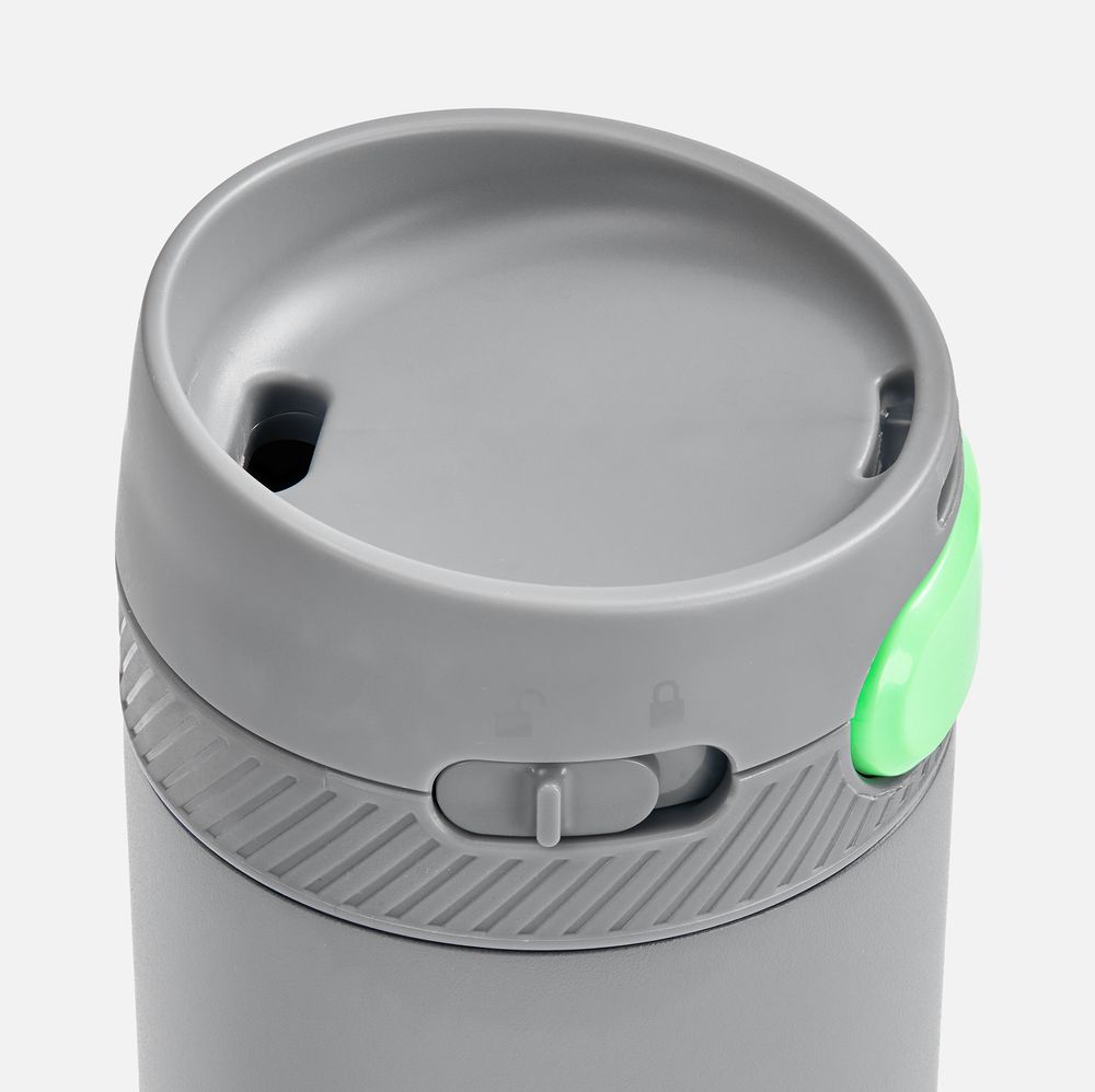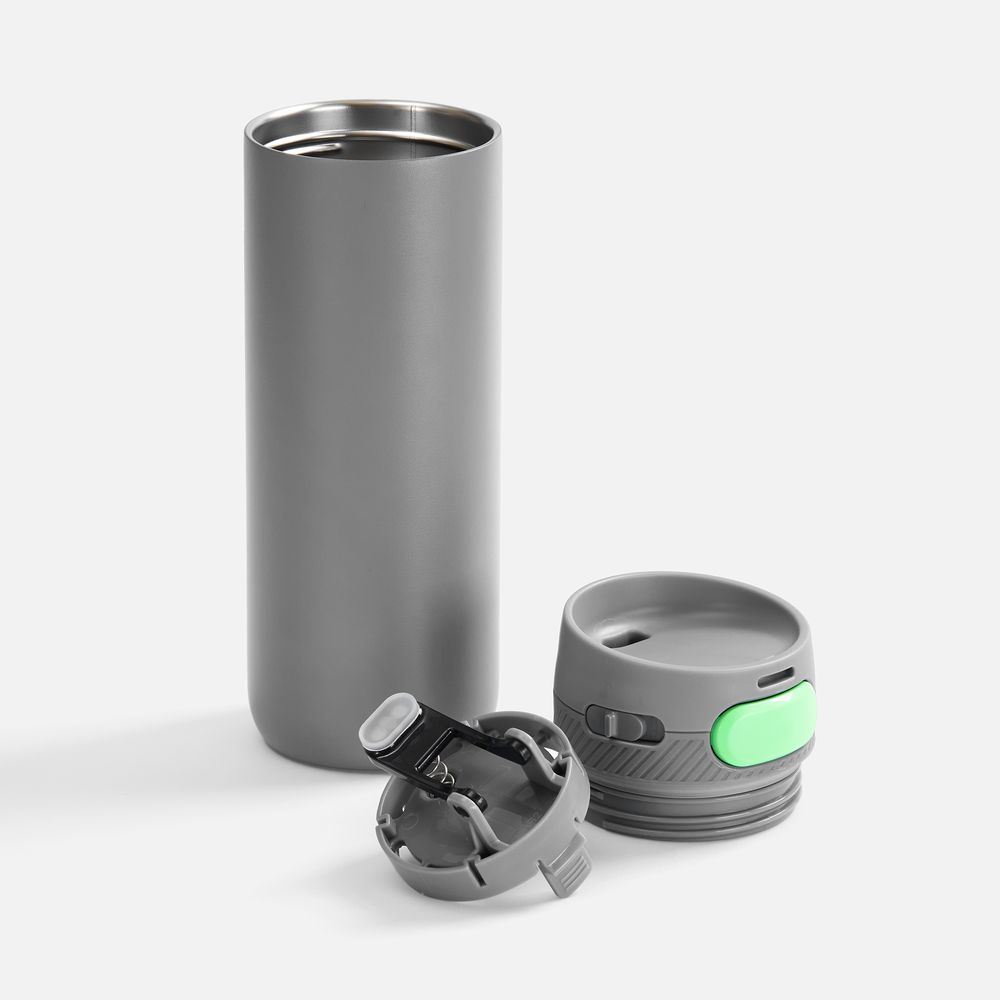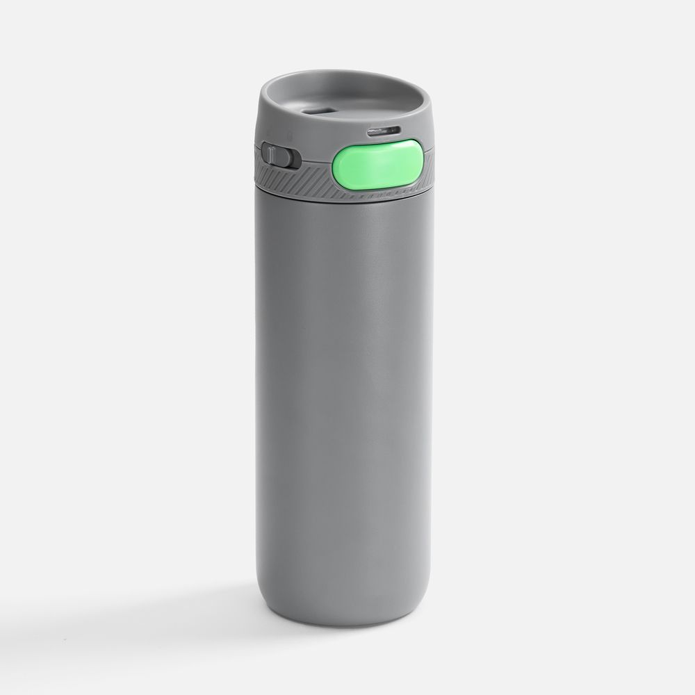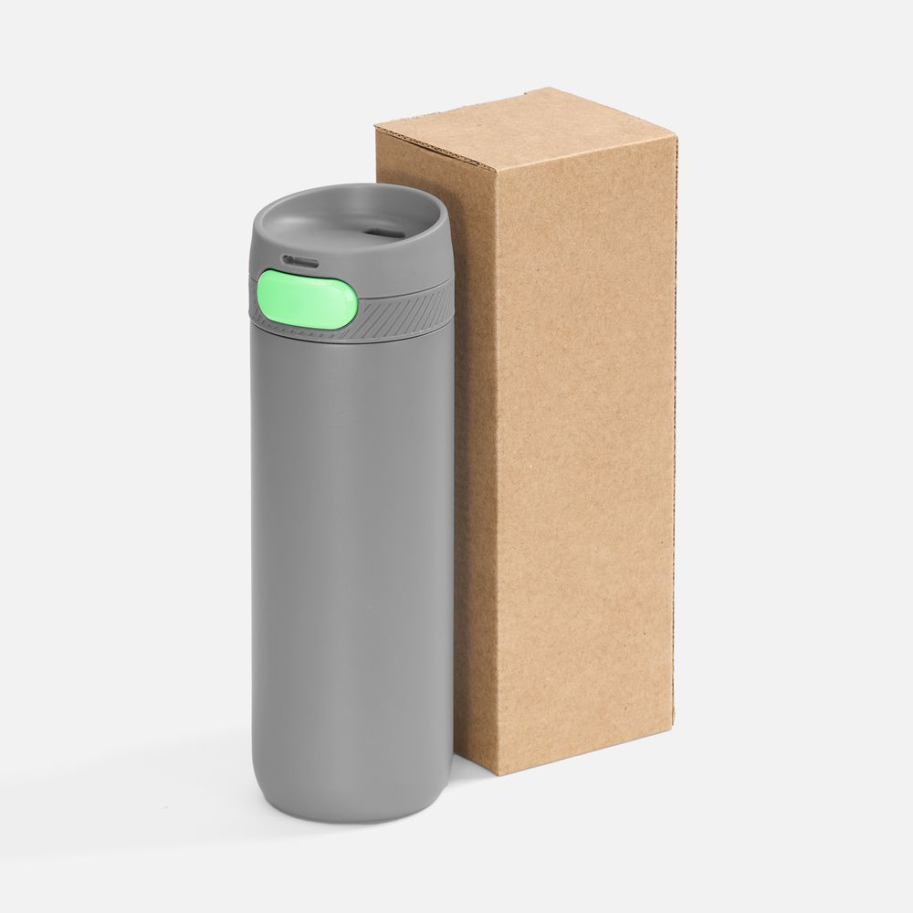 Термостакан X1 с цветной кнопкой, серый с зеленым диаметр дна 7 см, высота 22,5 см; упаковка: 23,7х8,2х8,2 см