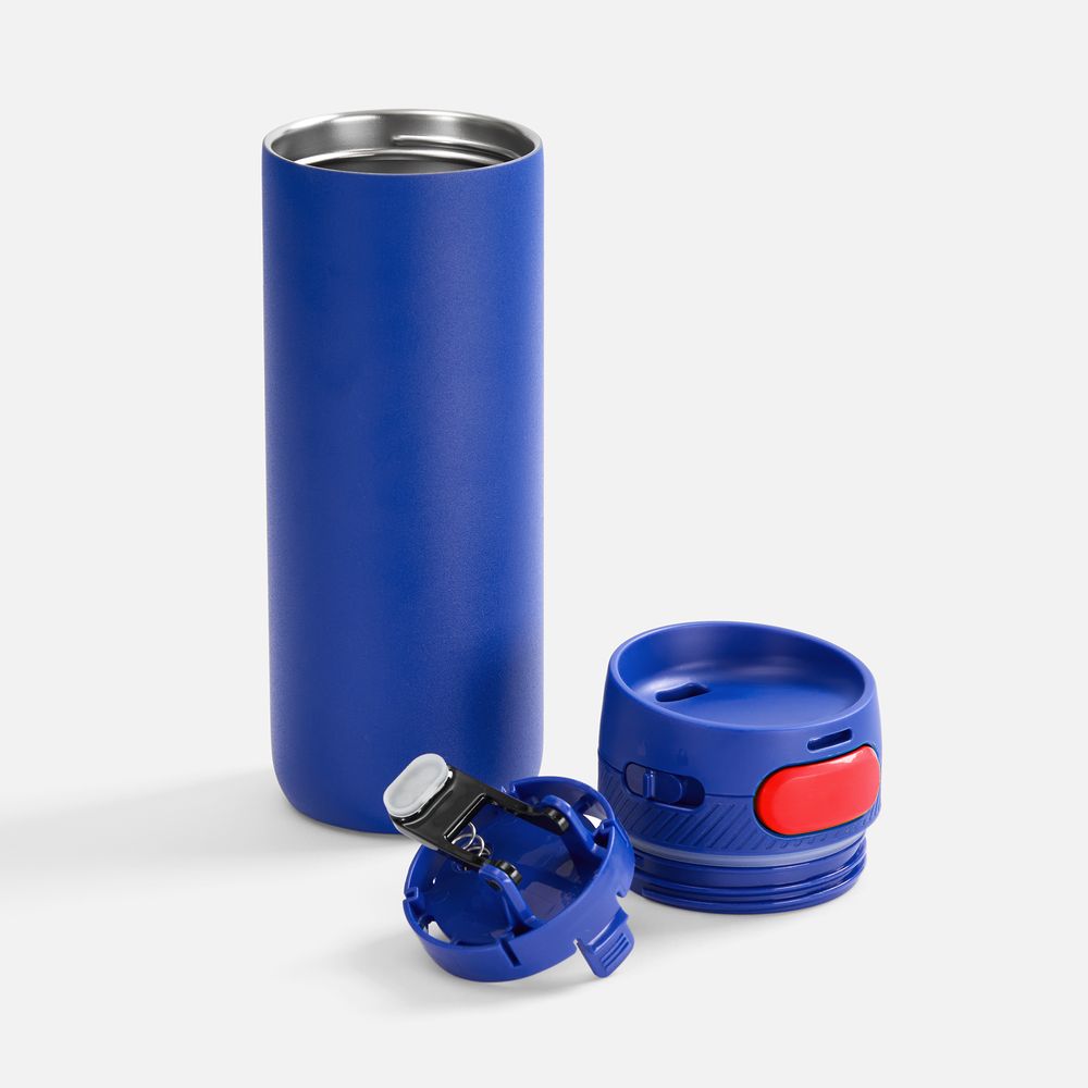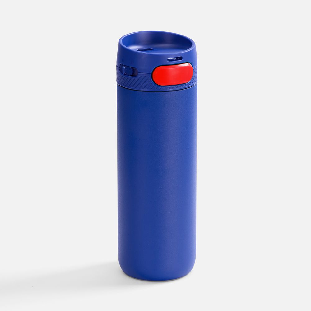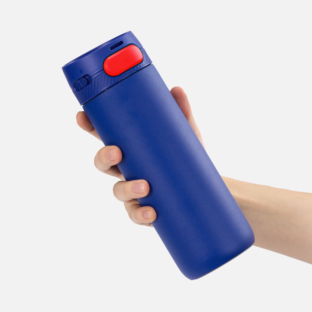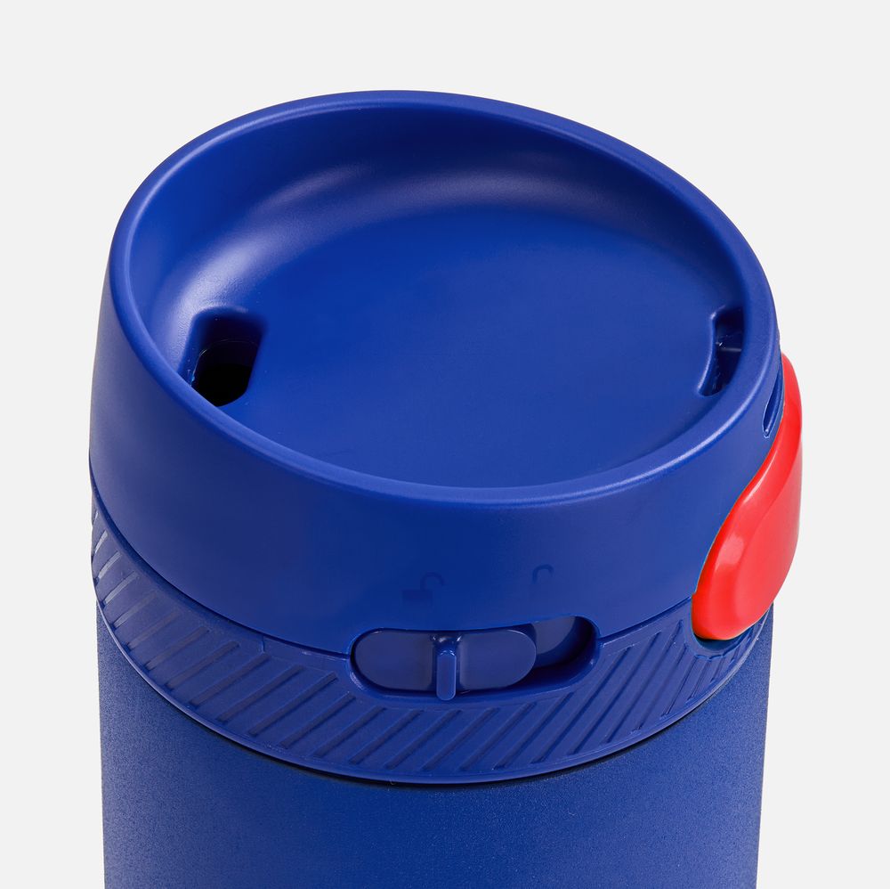 Термостакан X1 с цветной кнопкой, синий с красным диаметр дна 7 см, высота 22,5 см; упаковка: 23,7х8,2х8,2 см