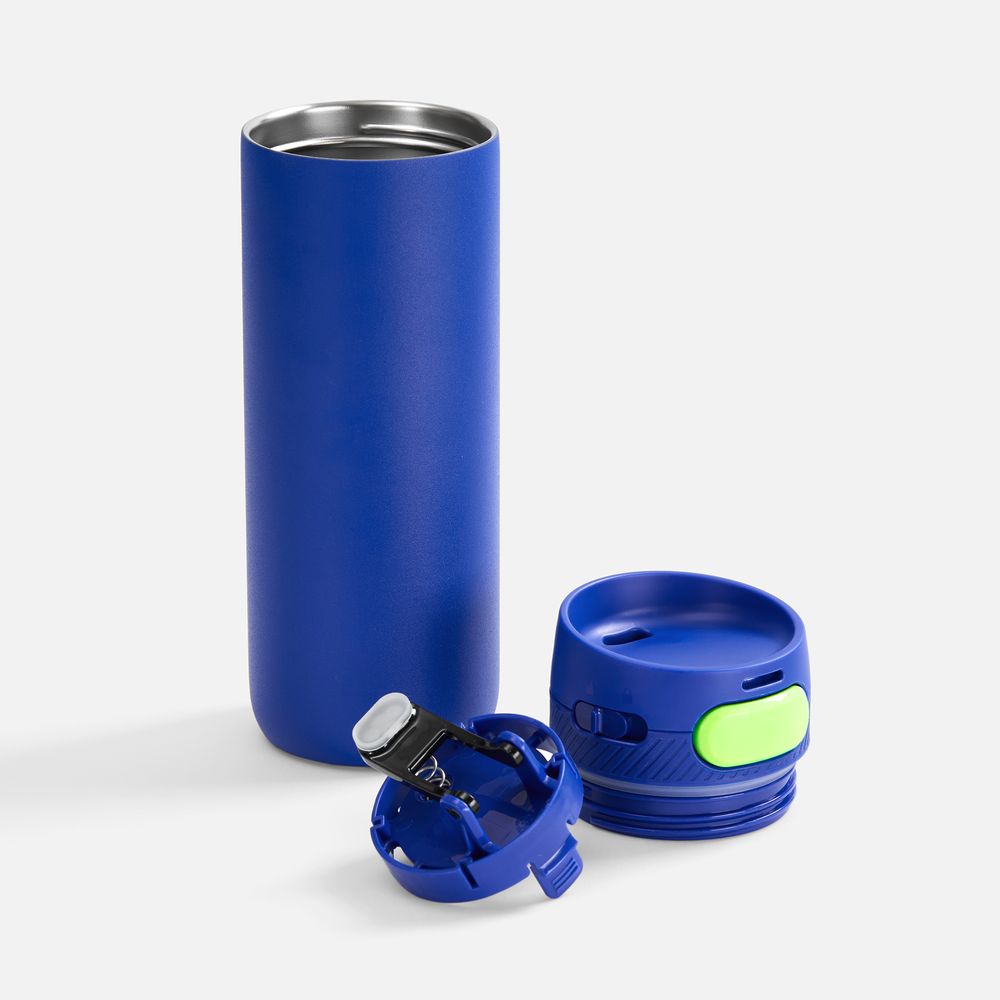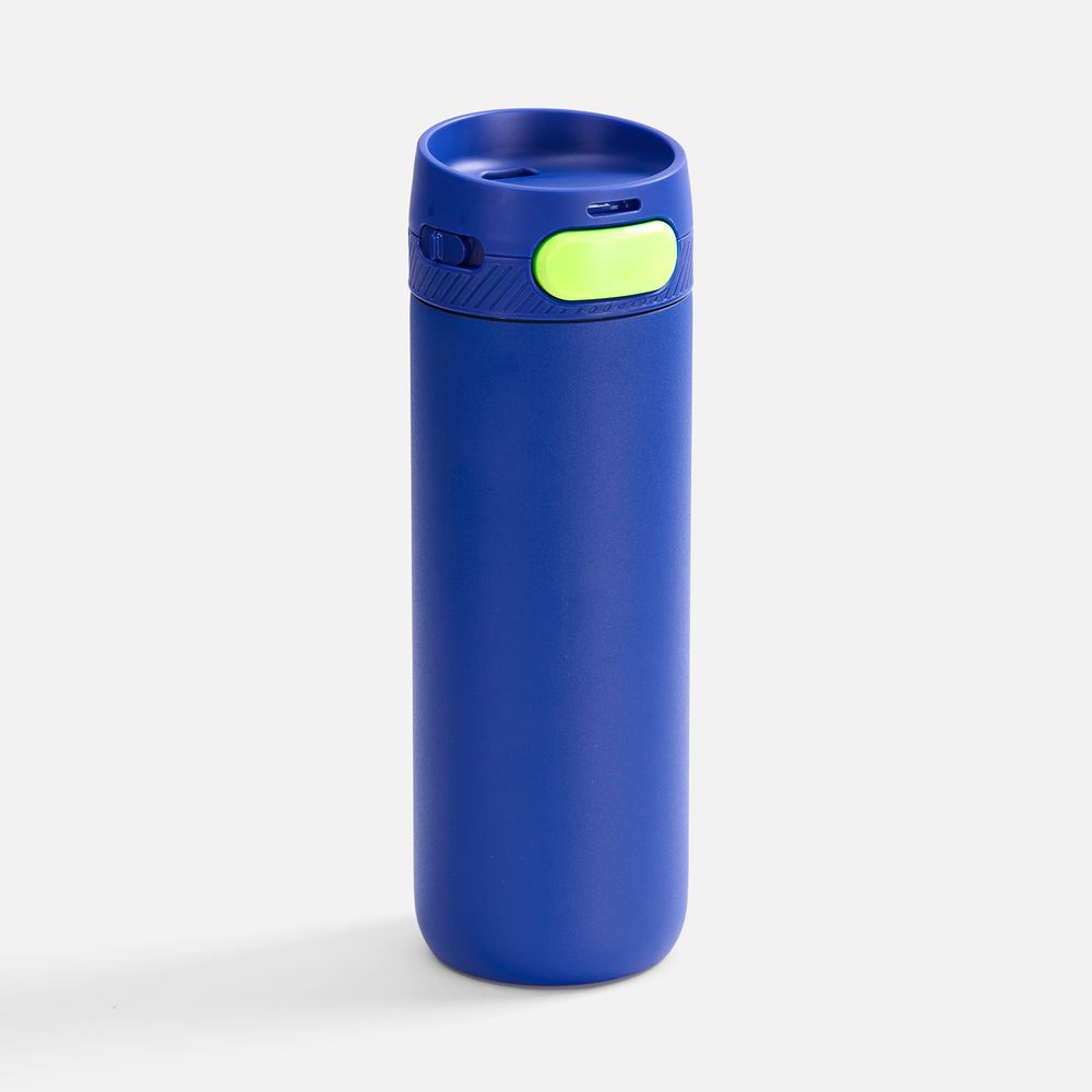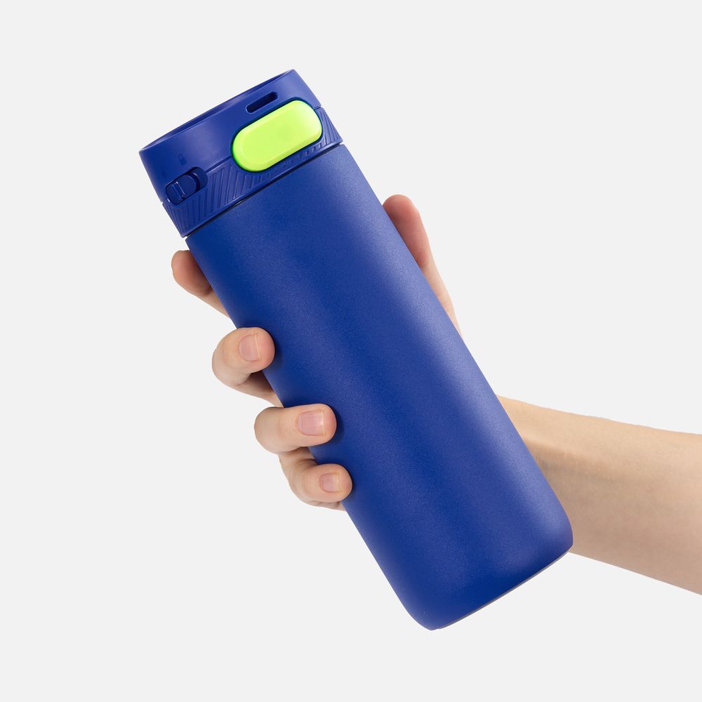 Термостакан X1 с цветной кнопкой, синий с желтым диаметр дна 7 см, высота 22,5 см; упаковка: 23,7х8,2х8,2 см
