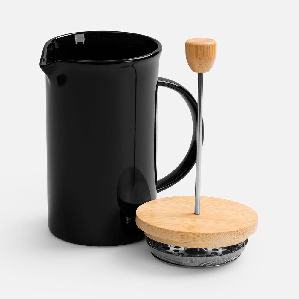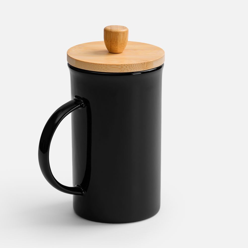 каменная керамика; крышка - бамбук; ситечко - нержавеющая сталь, 304