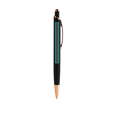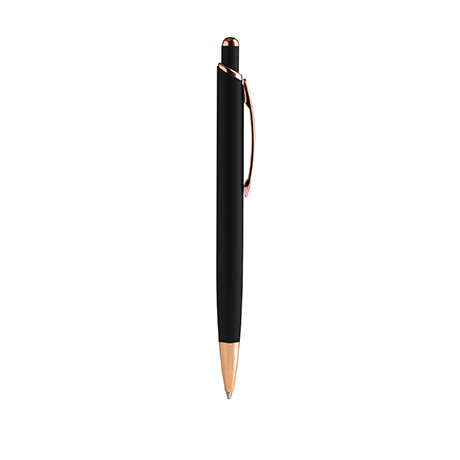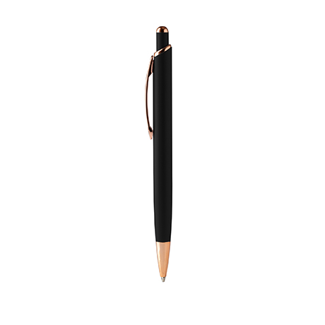 Шариковая ручка с матовой металлической структурой и деталями с медной отделкой.