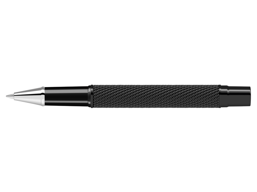 Металлический роллер, покрытый глянцевым лаком, с ремешком из настоящей сетки вокруг корпуса.