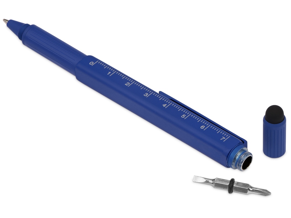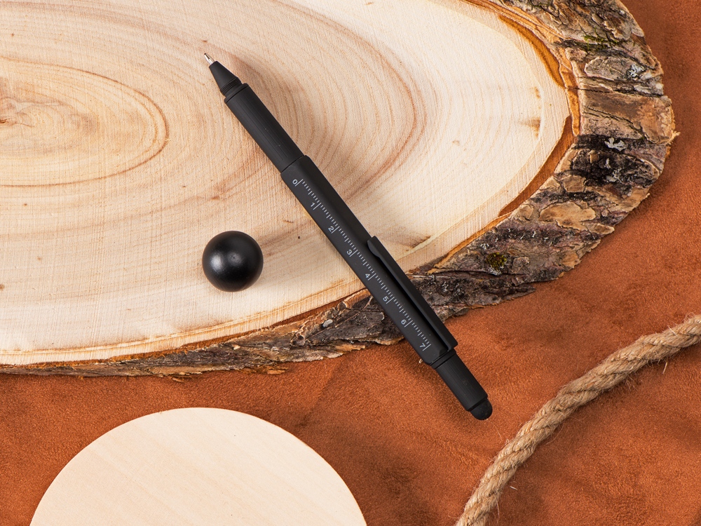 Четырехгранная металлическая ручка в одном корпусе сочетает несколько полезных функций: • Стилус для работы с устройствами с сенсорными экранами. • Под стилусом располагаются крестовая и шлицевая отвертки. • В металлический корпус встроен уровень, на корпусе линейка. • Стальной клип будет держать ручку надежно в кармане. • Возможность нанесения логотипа сразу на несколько граней ручки.