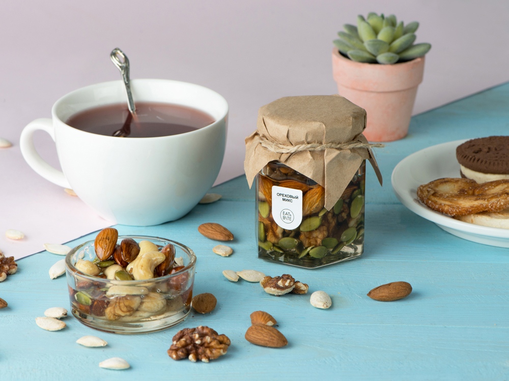 Полезный и вкусный подарок для любителей сладкого. Грецкие орехи, миндаль, кешью и тыквенные семечки в натуральном мёде станут отличным дополнением к любому чаепитию. Витамины и микроэлементы, в избытке содержащиеся в орехах и семечках, помогут поддержать иммунитет и укрепить организм. • масса нетто: 250 гр.; • красивая упаковка в стеклянную банку; • идеально к чаю.