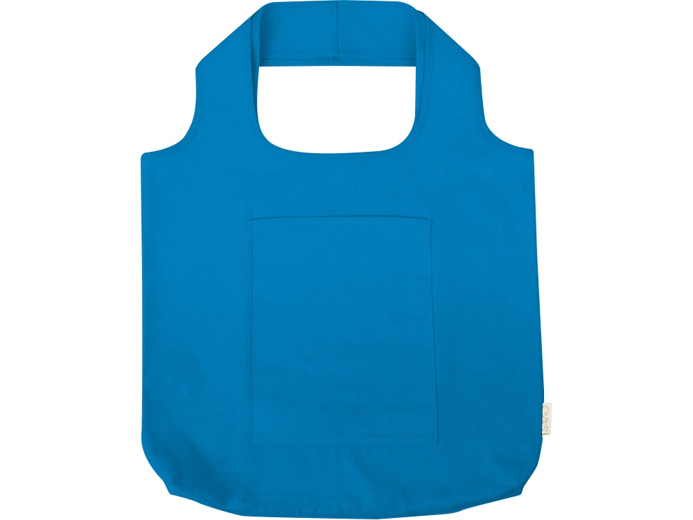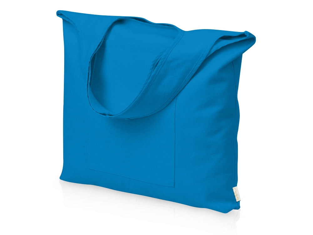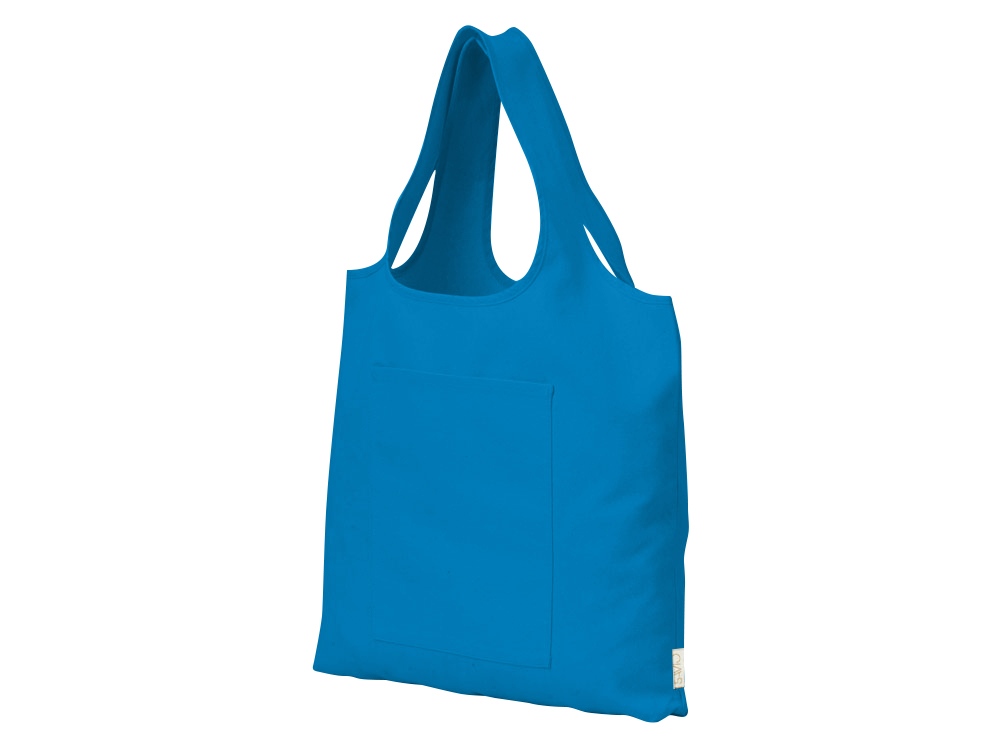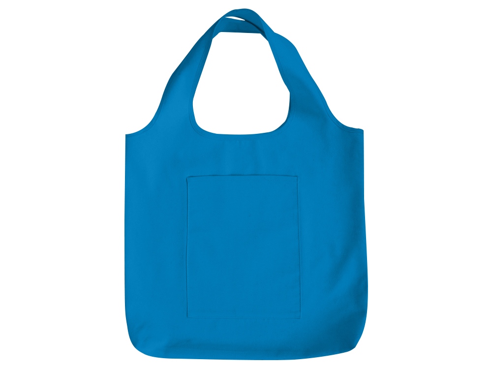Вместительная сумка-шоппер из очень плотного переработанного хлопка с широкими лямками и большим наружным карманом 20 x 25 см спереди.