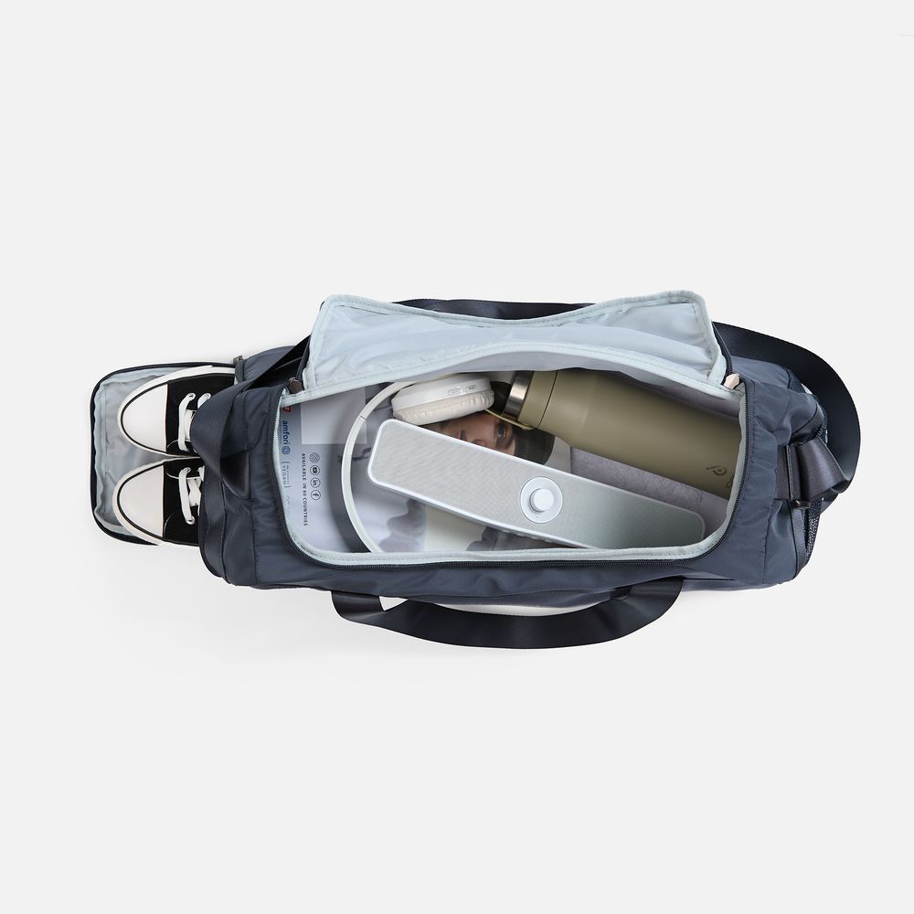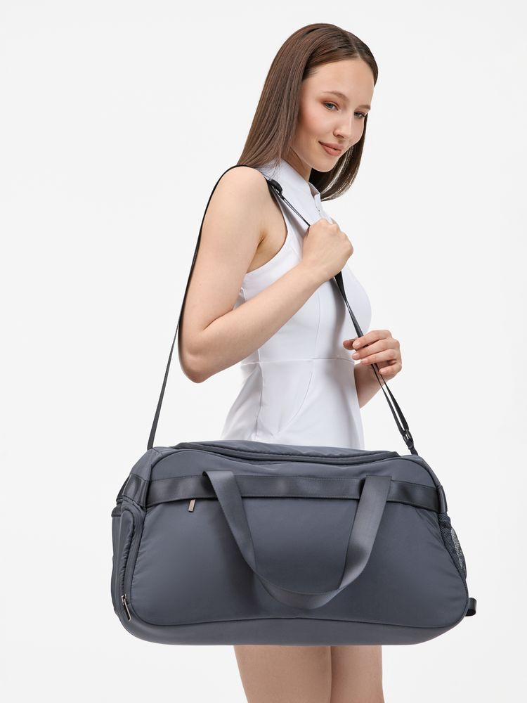 Сумка отличается продуманным дизайном: отделение для обуви с боковым входом на молнии предотвращает загрязнение остальных вещей, нижняя ручка упрощает извлечение сумки с багажной полки, а передний карман обеспечивает быстрый доступ к смартфону, ключам и проездным.