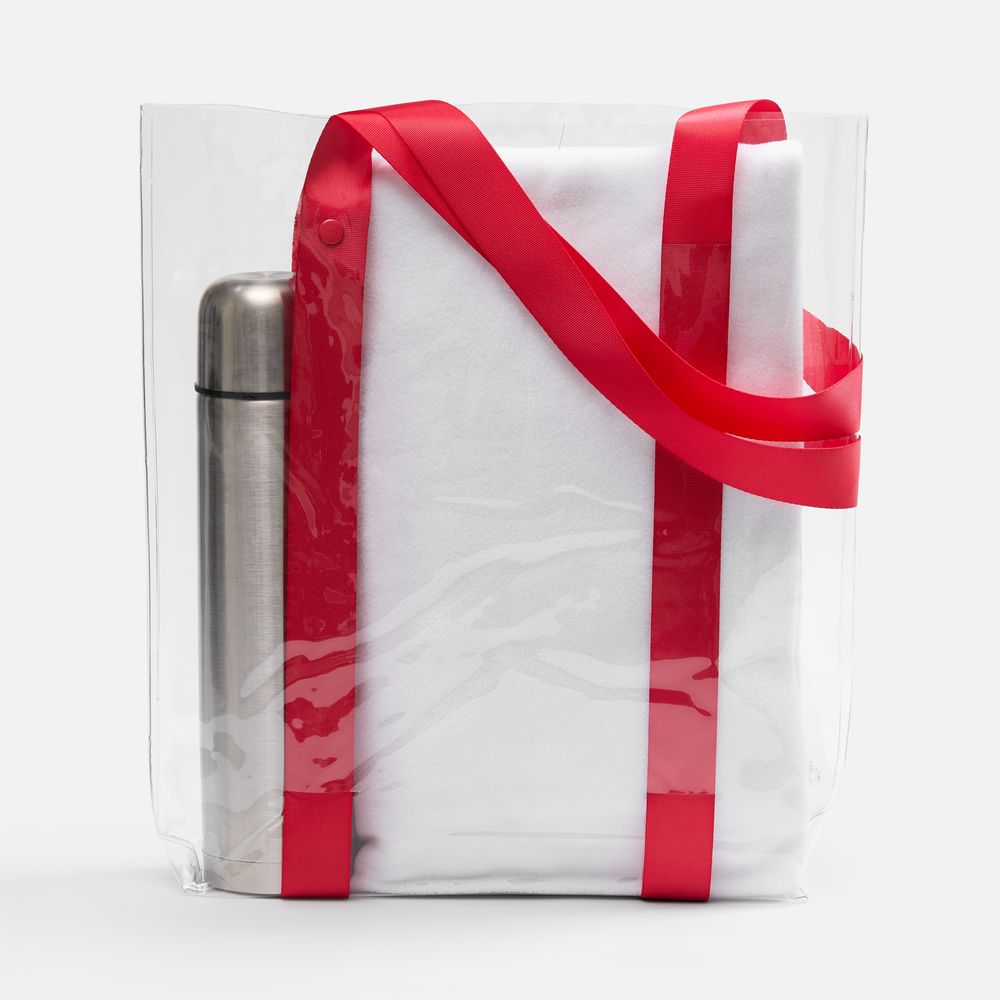 Шопер Clear Fest, ver.2, прозрачный с красными ручками 42x40x8 см
