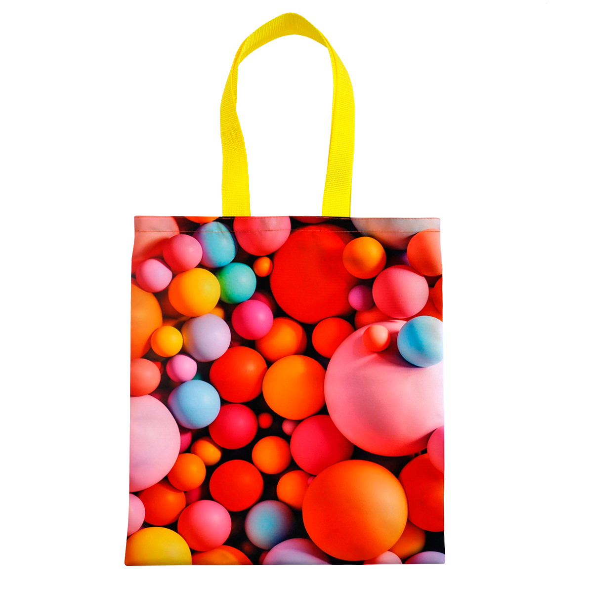 Сумка для покупок Caddy с полноцветной печатью. ✨ Стандартный шоппер с короткими ручками. Полноцветная печать по всей поверхности от шва до шва в соответствии с брендбуком клиента (любой оттенок по CMYK: логотипы, надписи и самые разнообразные принты). Без подкладки внутри. Размер: 35 х 40см. Размер ручек: 50 х 3см (пошиты из ременной ленты стандартной цветовой палитры). Материал: ткань Промо. Плотность: 245г/м². ✨ Ткань Промо - это 100% полиэфирное полотно саржевого переплетения с антистатической пропиткой. Ткань плотная, очень крепкая, хорошо держит форму.