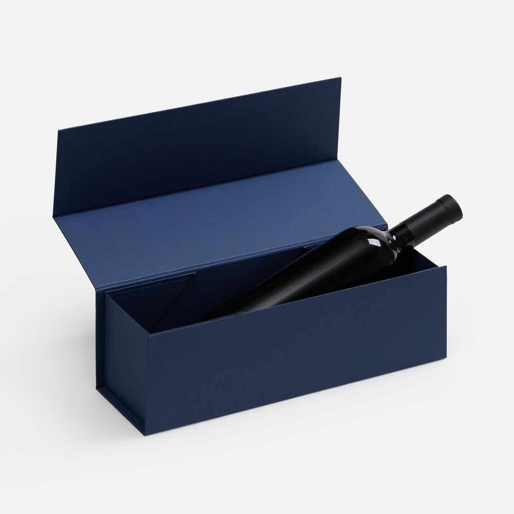 Коробка складная под бутылку Color Jacket Fold, темно-синяя (34х11х10,5 см; внутренний размер 32,5x9,7x9,1 см)